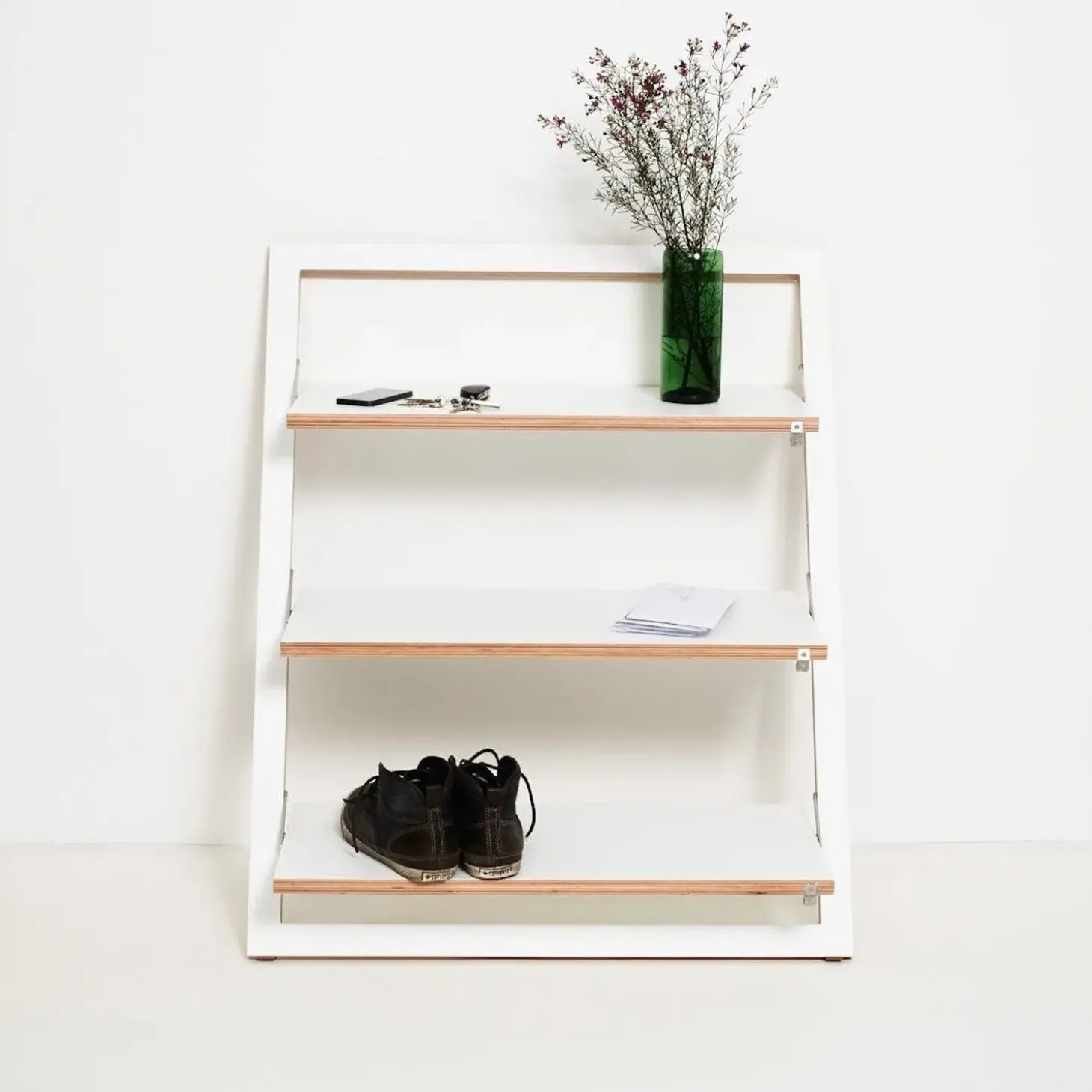 Opret en moderne indretning med denne Flapps Triple Leaning Shelf fra Ambivalenz. Lavet af birk krydsfiner, den er hvidfarvet og har en lakeret finish.