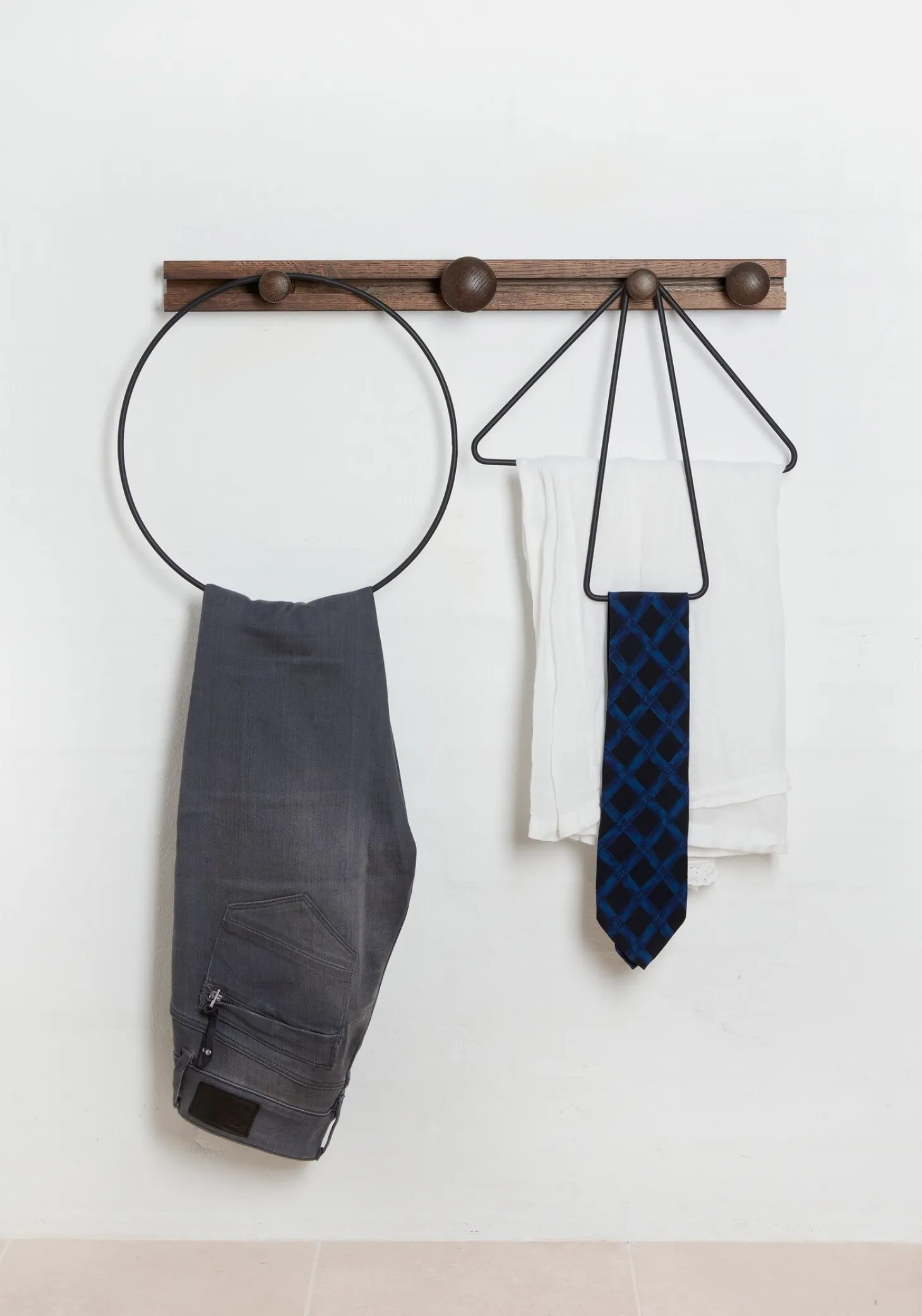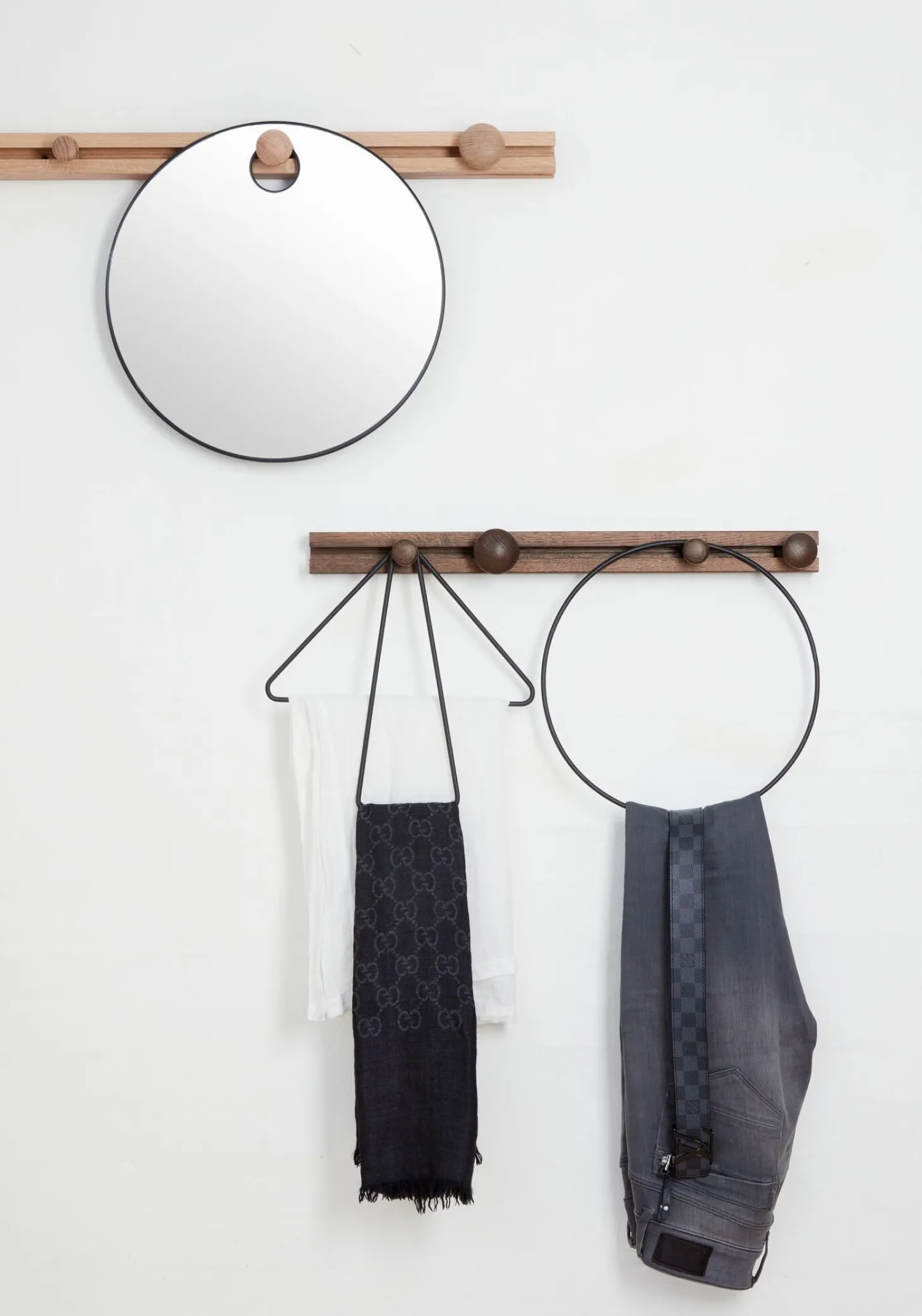 Du får en knagerække, der giver dig frihed til at hænge både tøj og tilbehør, som du ønsker. De forskellige geometriske former sikrer, at du kan organisere dine ting på en måde, der passer til netop dine behov i hverdagen.