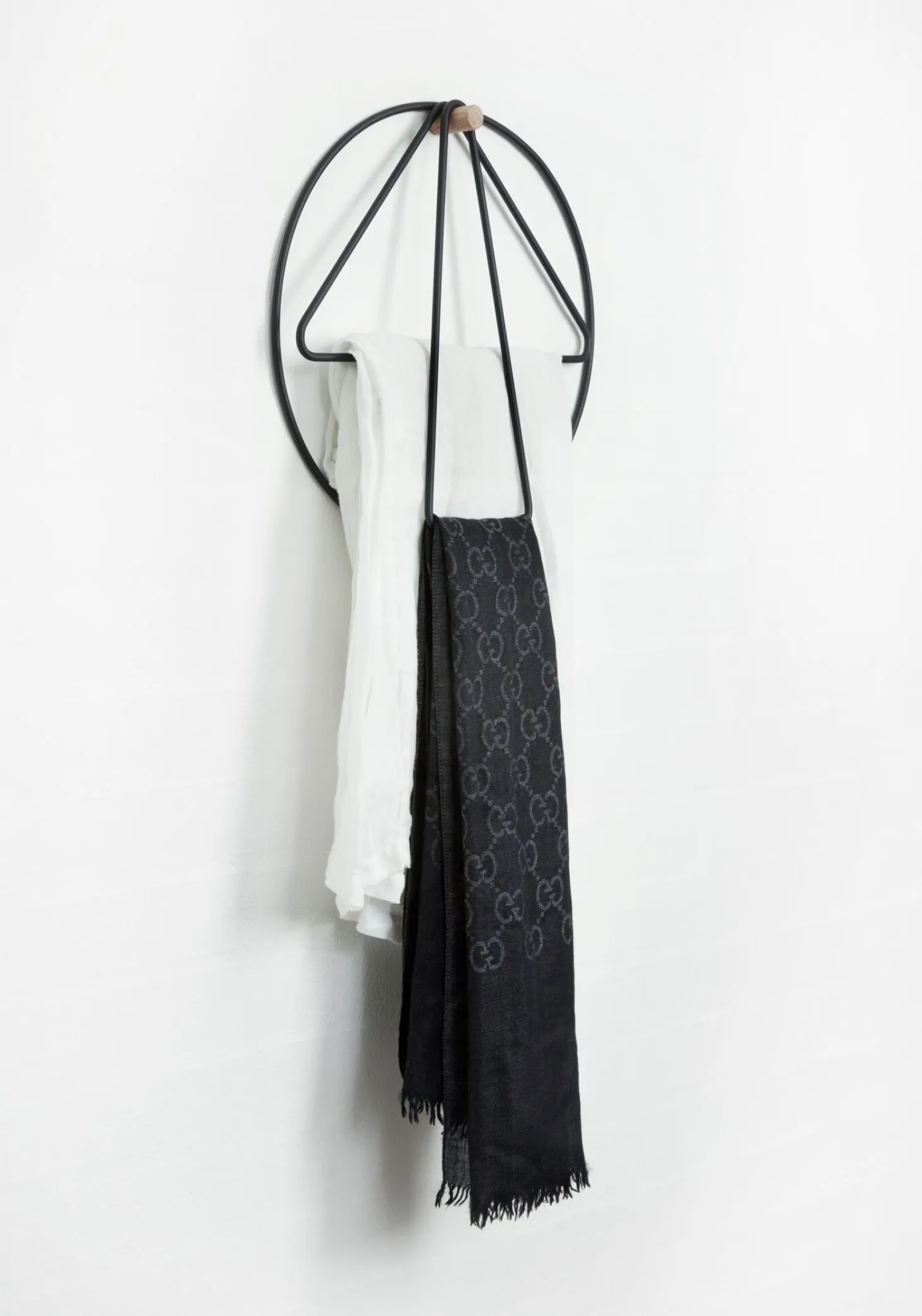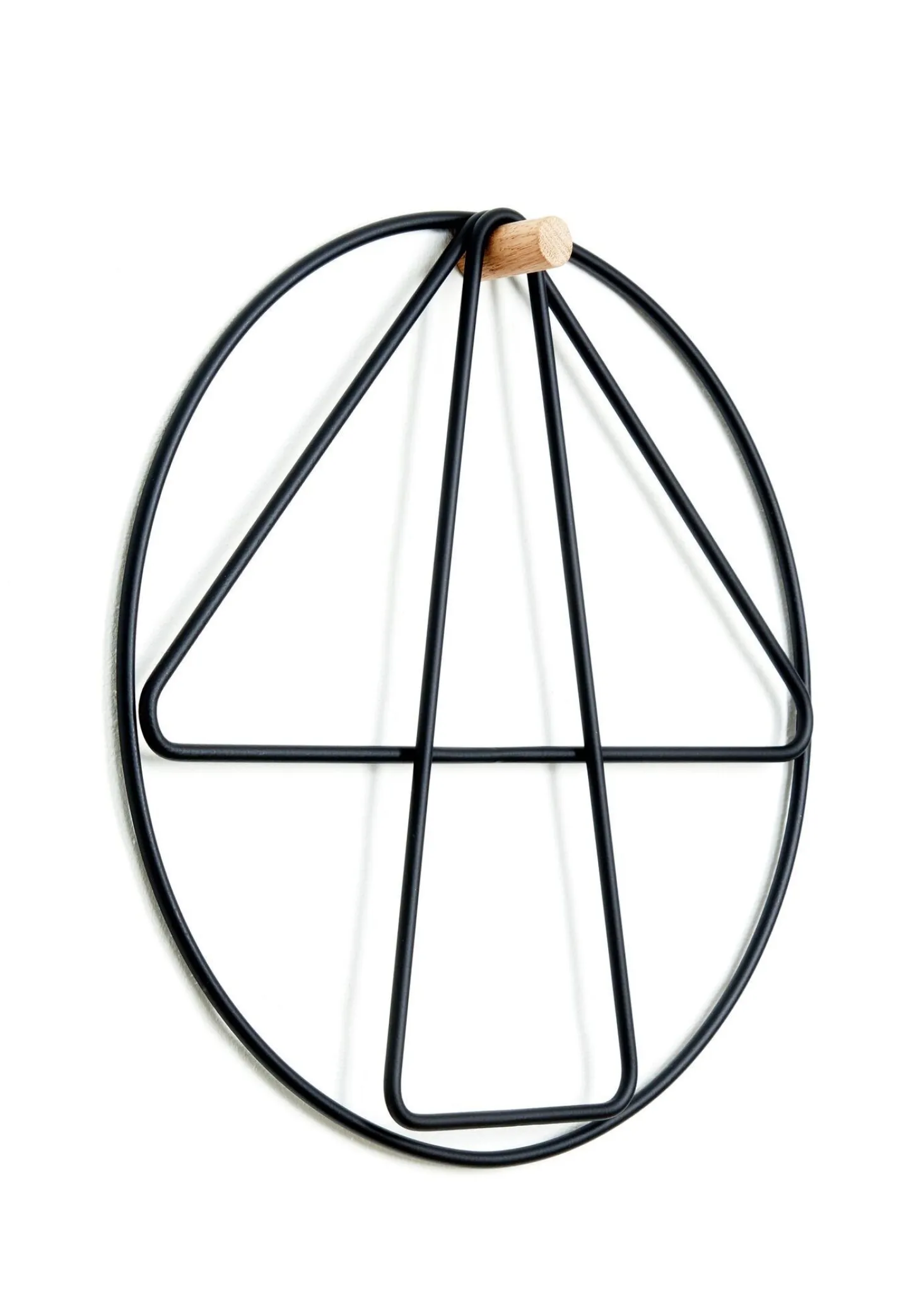 Denne knagerække fra Applicata kombinerer geometriske former med praktisk funktionalitet. Med en diameter på 33 cm giver den dig en kompakt opbevaringsløsning, hvor pulverlakeret jern møder en varm træskinne i et karakteristisk design.