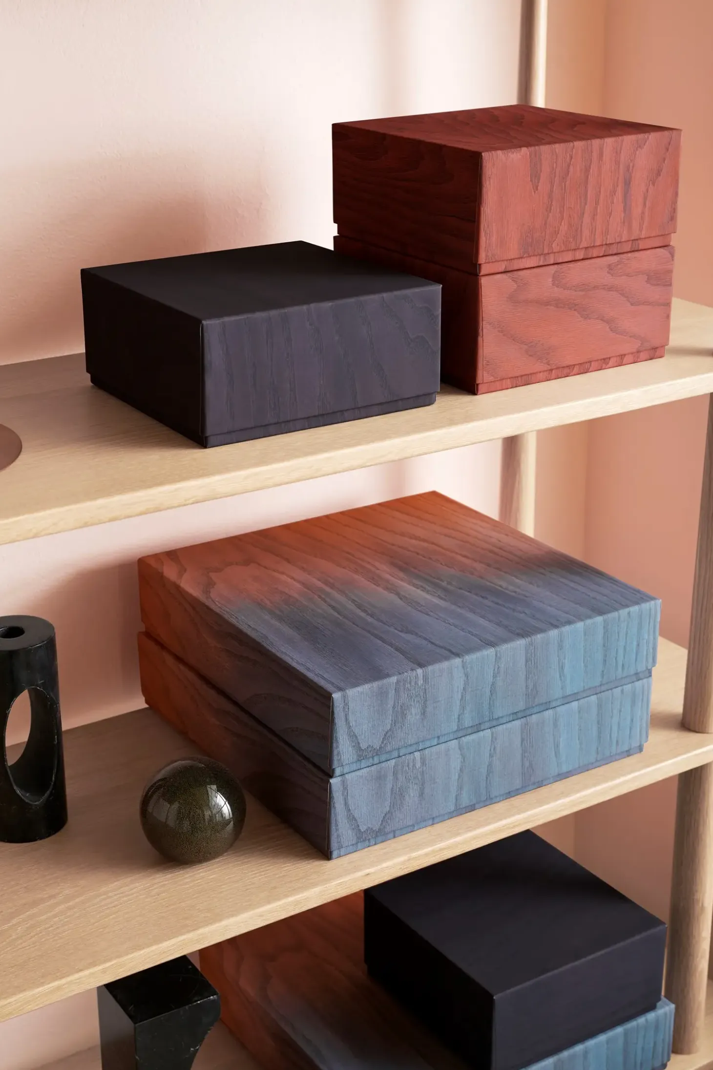 Med den graduerede farveskala fra blå til rød får du ikke bare en opbevaringsløsning, men også et dekorativt element. Kassens design passer særligt godt til dig, der ønsker at tilføje et kunstnerisk touch til din organisering.