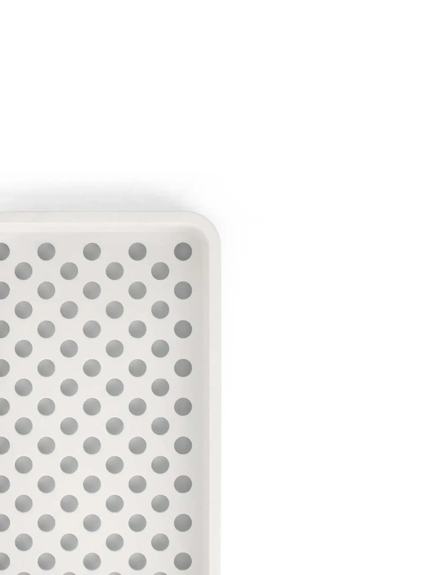 De små huller på den øverste del af bakken tillader vand at dræne væk, hvilket forhindrer ophobning af vand og holder dine badeværelsesprodukter tørre og klar til brug.