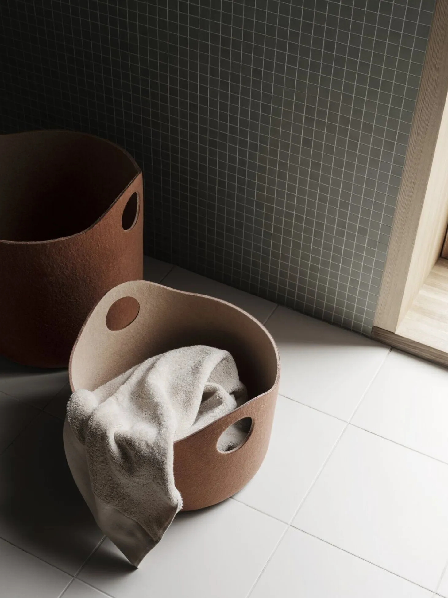 SMART OPBEVARING – Uanset om du er en maksimalist, der nyder at have dine skatte fremvist, eller en minimalist, der foretrækker, at alt skal gemmes væk bag lukkede døre, er god opbevaring grundlæggende for ethvert velfungerende rum. Den gode nyhed er, at der er noget for enhver smag med den tyske designer Andreas Kowalewskis enkelt stylede Tiggy opbevaringskurve – den perfekte fusion af æstetiske kvaliteter og praktiske overvejelser. Designet i et blødt filtmateriale er opbevaringskurvene en visuel tiltalende tilføjelse til næsten ethvert rum, og med to tilgængelige størrelser – en stor version perfekt som vasketøjskurv og en mindre version praktisk til opbevaring af magasiner eller brænde til pejsen – er der en der passer til ethvert behov. Kurvene har praktiske bærehåndtag i den enkle form af udskårne cirkler, som understreger deres rene silhuet, og ligesom de matchende Herba opbevaringsbeholdere kommer de i to unikke farvekombinationer: en klassisk beige/blød hvid og en afdæmpet terracotta/ sand.