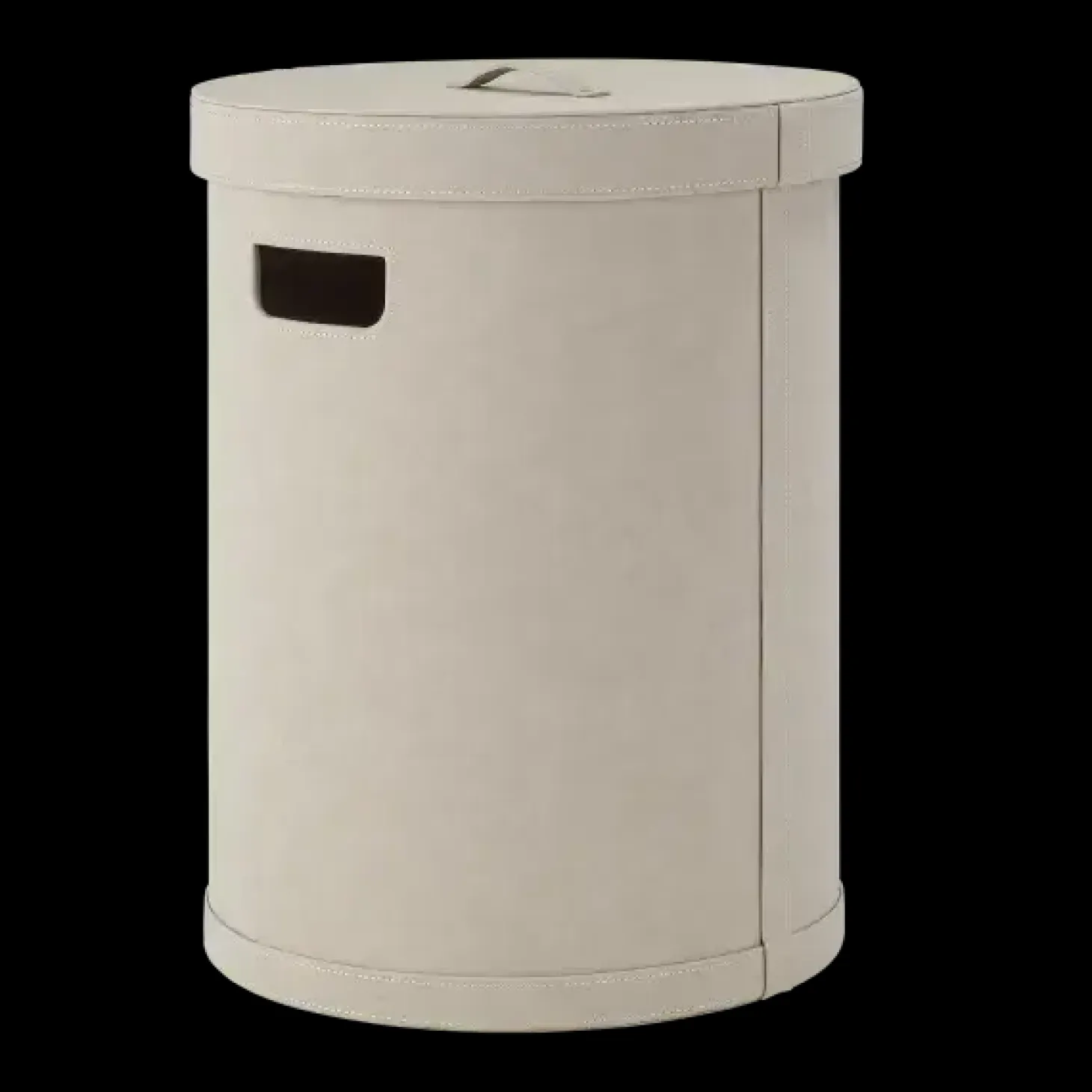 SAHLA vasketøjskurv kombinerer praktisk opbevaring med et rent udtryk. Den cylindriske form i PU-læder giver dig en holdbar løsning til dit vasketøj, mens låget med håndtag sikrer nem adgang til indholdet.