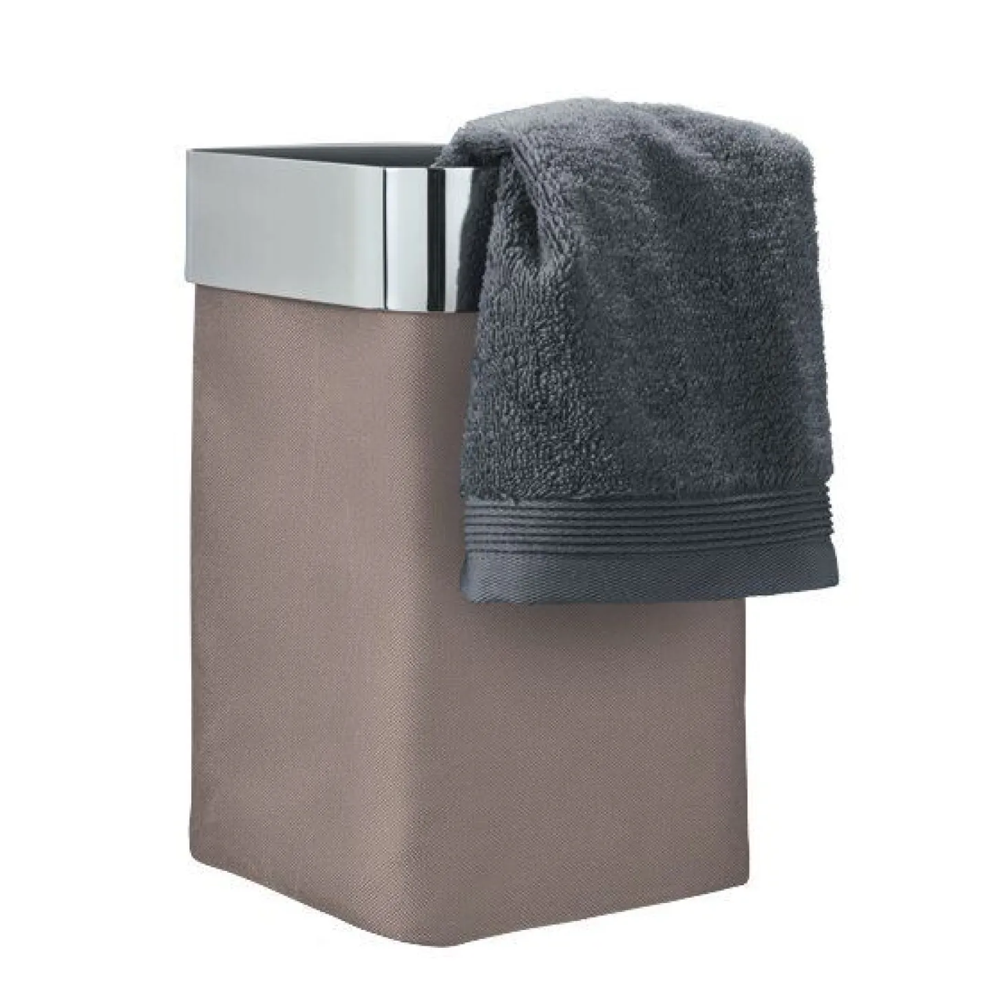 Kun det bedste for dine gæster! Uden tvivl er denne elegante NEXIO gæstehåndklædekurv den mest attraktive måde at opbevare brugte gæstehåndklæder på. Den polerede rustfri stålsektion rundt om toppen rummer den Taupe-farvede bomuldskurv, som kan tages af og vaskes. En metalplade, som også er aftagelig, forstærker bunden og bibeholder samtidig kurvens form. Fås også i antracit og i mat finish. Monteringssæt medfølger. Vil du ikke bruge en boremaskine? Et specielt limsæt kan bestilles separat (varenr. 68809).
