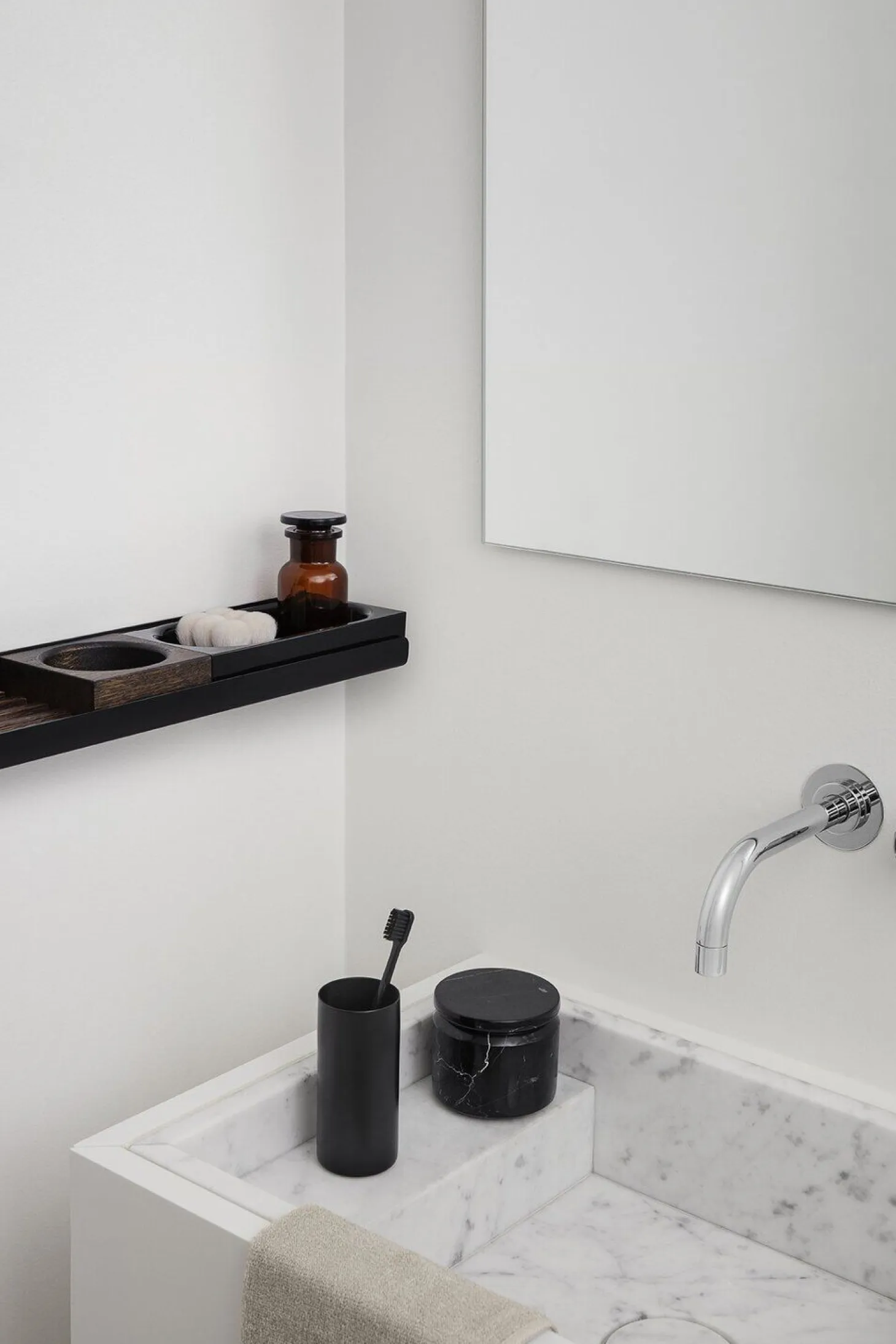 Sikker og forsvarlig: Den firkantede MODO opbevaringsbakke er den perfekte opbevaringsløsning til sæbedispensere, kosmetiske genstande og smykker. Bakken, lavet af massivt egetræ, er lavet til at matche MODO væghylden. Dens koordinerede look holder dine ejendele pæne og ryddelige. To ekstra versioner fås i eg og akrylglas for at give farve og struktur til den sorte hylde.