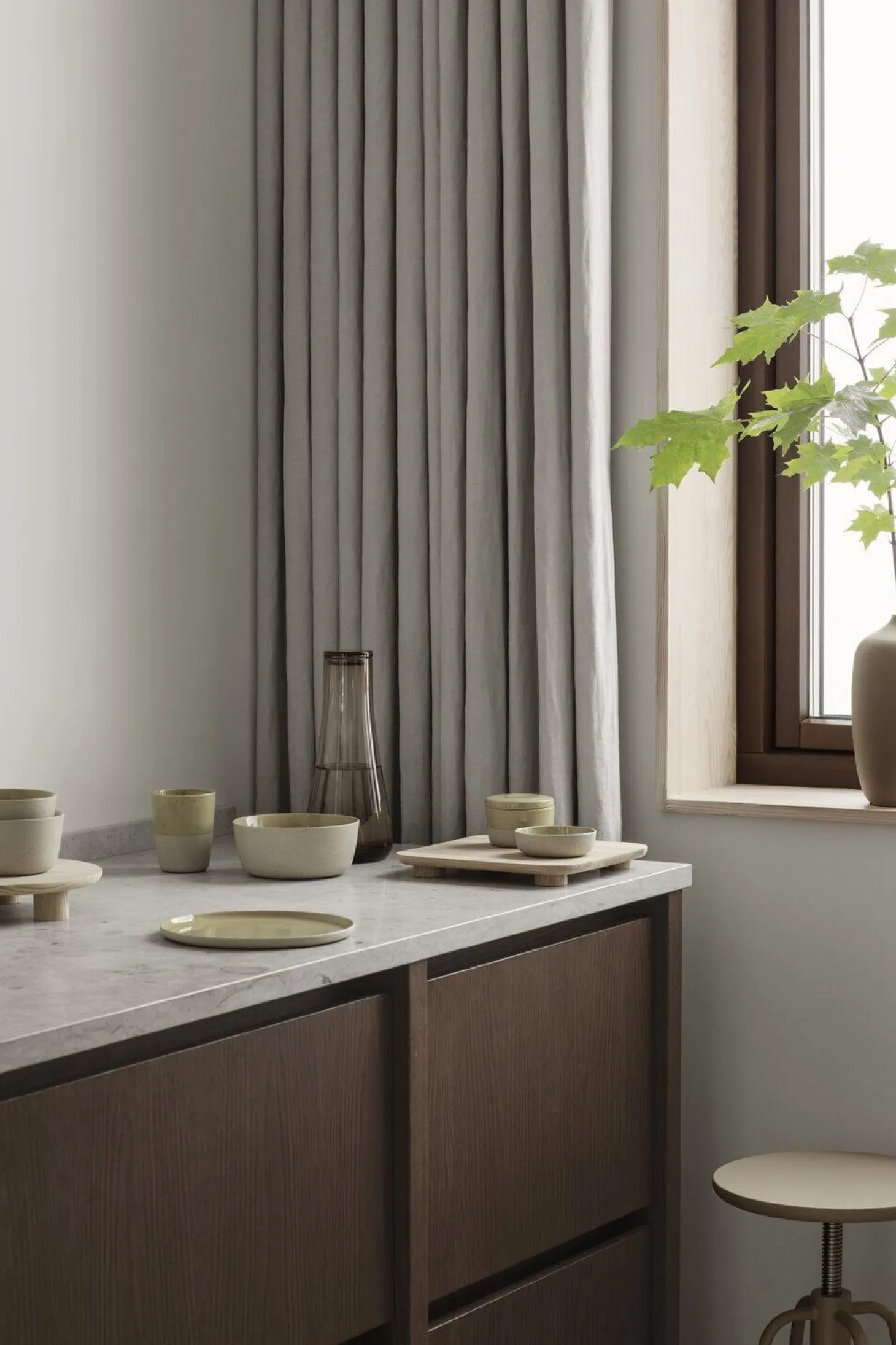 Vælg nogle af dine yndlingsblomster – eller tag blot nogle vilde grene for at give dit interiør en rustik, naturlig følelse. Med Ceola-vaseserien af Frederike Martens har grønt fået et nyt hjem i dit liv. Kollektionen omfatter fem forskellige former og størrelser, i enten en blød hvid eller en sandet Khaki nuance. Alle med den samme slanke hals, der præsenterer planten i en smuk oprejst stilling, samtidig med at stilken ikke bøjer eller knækker. Vasens afrundede, organiske silhuet er inspireret af traditionelle japanske metalvaser, der er blevet håndlavet af lokale håndværkere gennem århundreder. Den let ru keramiske overflade med sine subtile farvevariationer bidrager til det naturlige helhedsindtryk samt den unikke karakter af hver enkelt vase. Vaserne i CEOLA-serien er matte, har en ru glaseret overflade og er lavet af modstandsdygtig keramik. Små ujævnheder, små farveafvigelser og synlige linjer er fabrikationsspor, der indikerer produktionen. De gør disse vaser unikke.