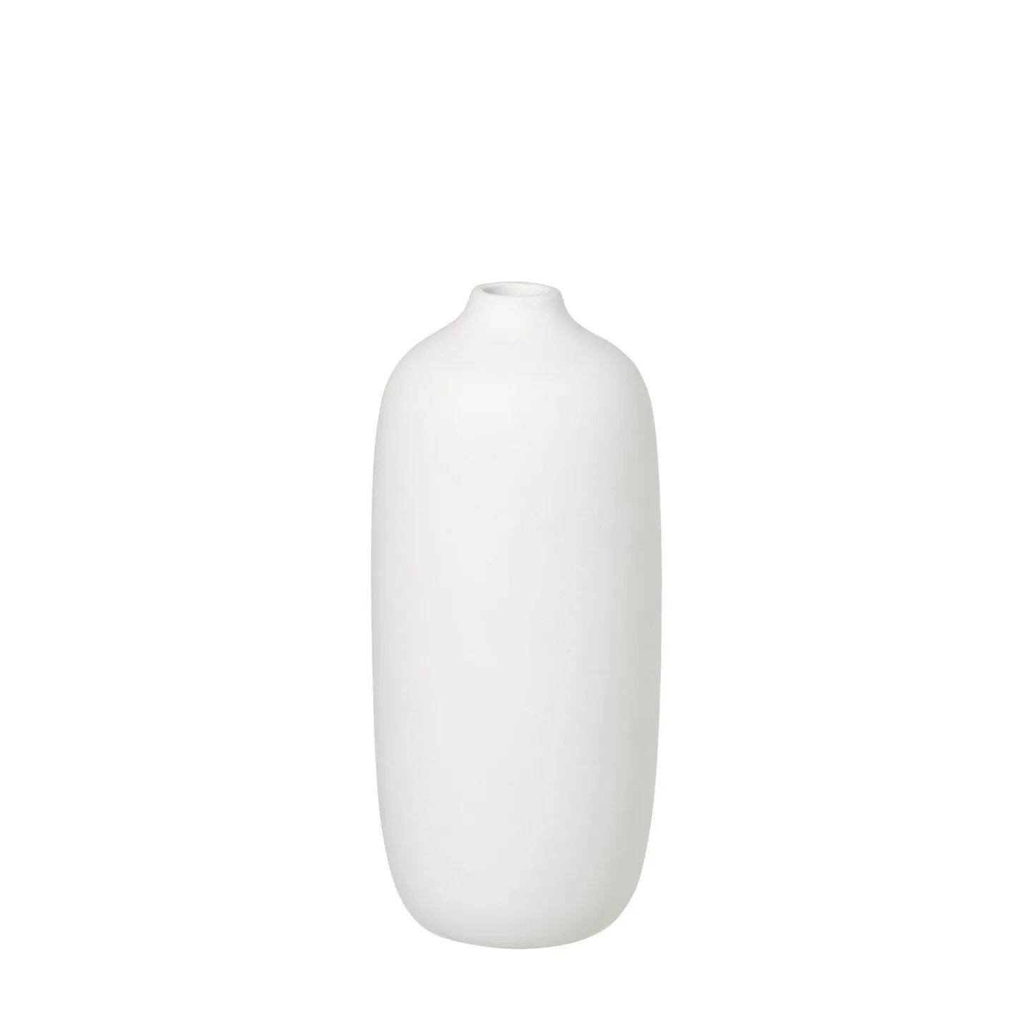 Vælg nogle af dine yndlingsblomster – eller tag blot nogle vilde grene for at give dit interiør en rustik, naturlig følelse. Med Ceola-vaseserien af Frederike Martens har grønt fået et nyt hjem i dit liv. Kollektionen omfatter fem forskellige former og størrelser, i enten en blød hvid eller en sandet Khaki nuance. Alle med den samme slanke hals, der præsenterer planten i en smuk oprejst stilling, samtidig med at stilken ikke bøjer eller knækker. Vasens afrundede, organiske silhuet er inspireret af traditionelle japanske metalvaser, der er blevet håndlavet af lokale håndværkere gennem århundreder. Den let ru keramiske overflade med sine subtile farvevariationer bidrager til det naturlige helhedsindtryk samt den unikke karakter af hver enkelt vase. Vaserne i CEOLA-serien er matte, har en ru glaseret overflade og er lavet af modstandsdygtig keramik. Små ujævnheder, små farveafvigelser og synlige linjer er fabrikationsspor, der indikerer produktionen. De gør disse vaser unikke.