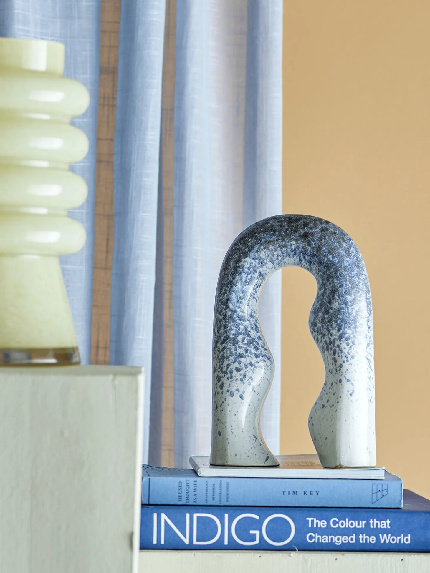 Denne Gate Deko fra Bloomingville er skabt i holdbart stentøj med en reaktiv glasur, der giver hvert enkelt stykke et unikt udtryk. Den buede form med åbning i midten skaber et interessant spil mellem lys og skygge.