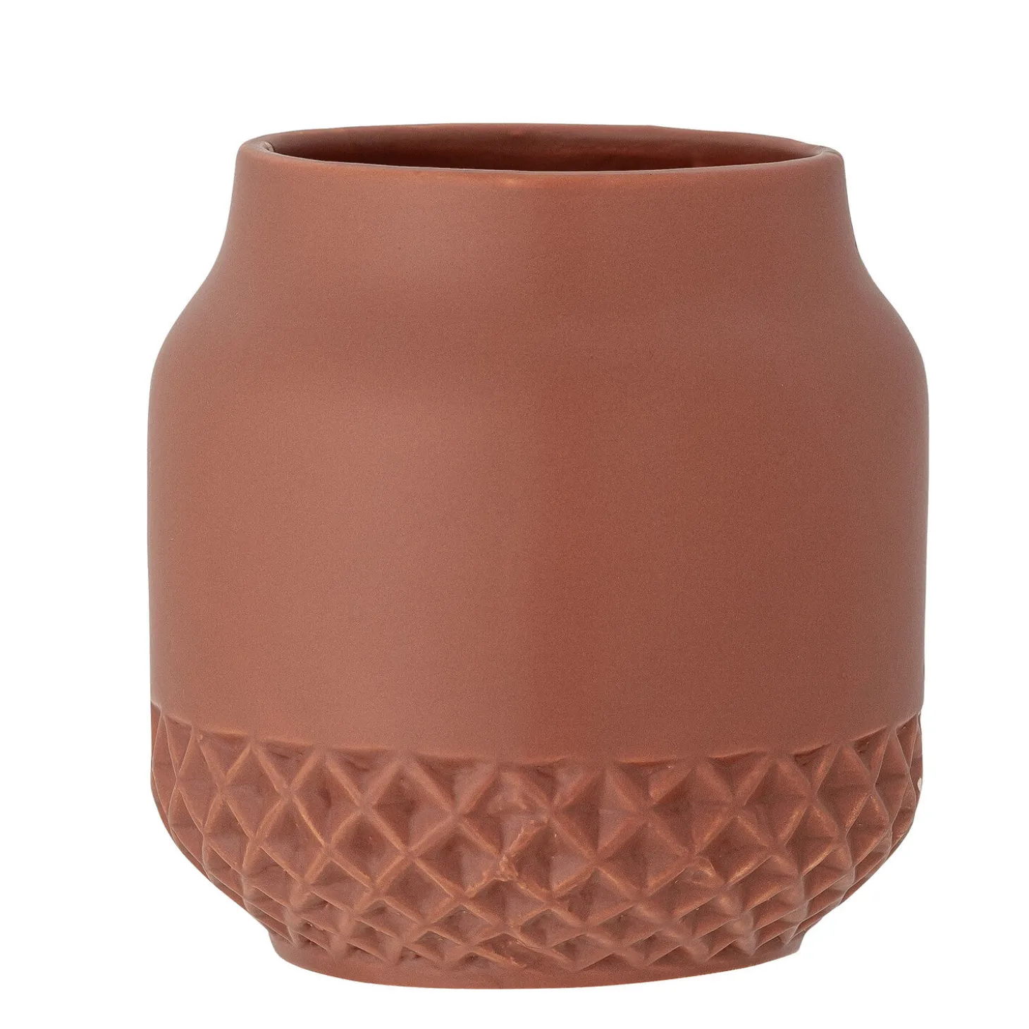 Med sine nøje udvalgte dimensioner på D12,5 x H13,5 cm passer Holden urtepotteskjuleren perfekt til en række forskellige plantestørrelser. Den røde farve tilfører varme og karakter til ethvert rum, hvilket gør den til et alsidigt valg for forskellige indretningsstile. Uanset om du foretrækker en minimalistisk eller en mere farverig indretning, vil denne urtepotteskjuler tilføje et raffineret touch til dit grønne hjørne. Den glatte overflade gør den nem at rengøre, mens den teksturerede bund tilføjer et interessant designelement.