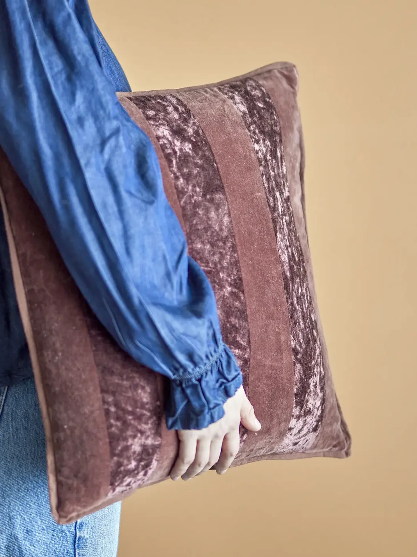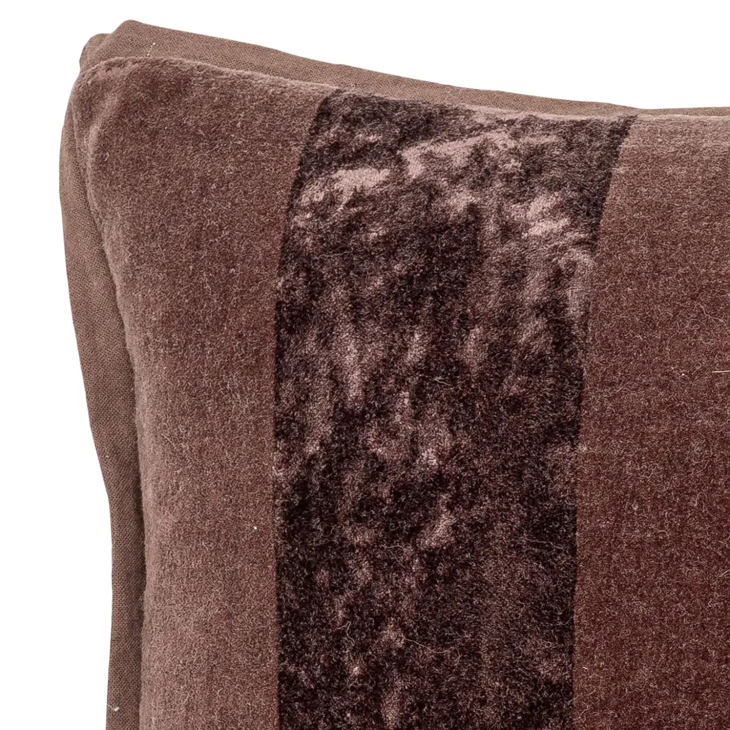 Denne kvadratiske pude fra Bloomingville kombinerer fløjl og lærred i et stribet design, der skaber en spændende kontrast mellem matte og skinnende overflader. Den brune farvetone passer naturligt ind i forskellige indretningsstile.