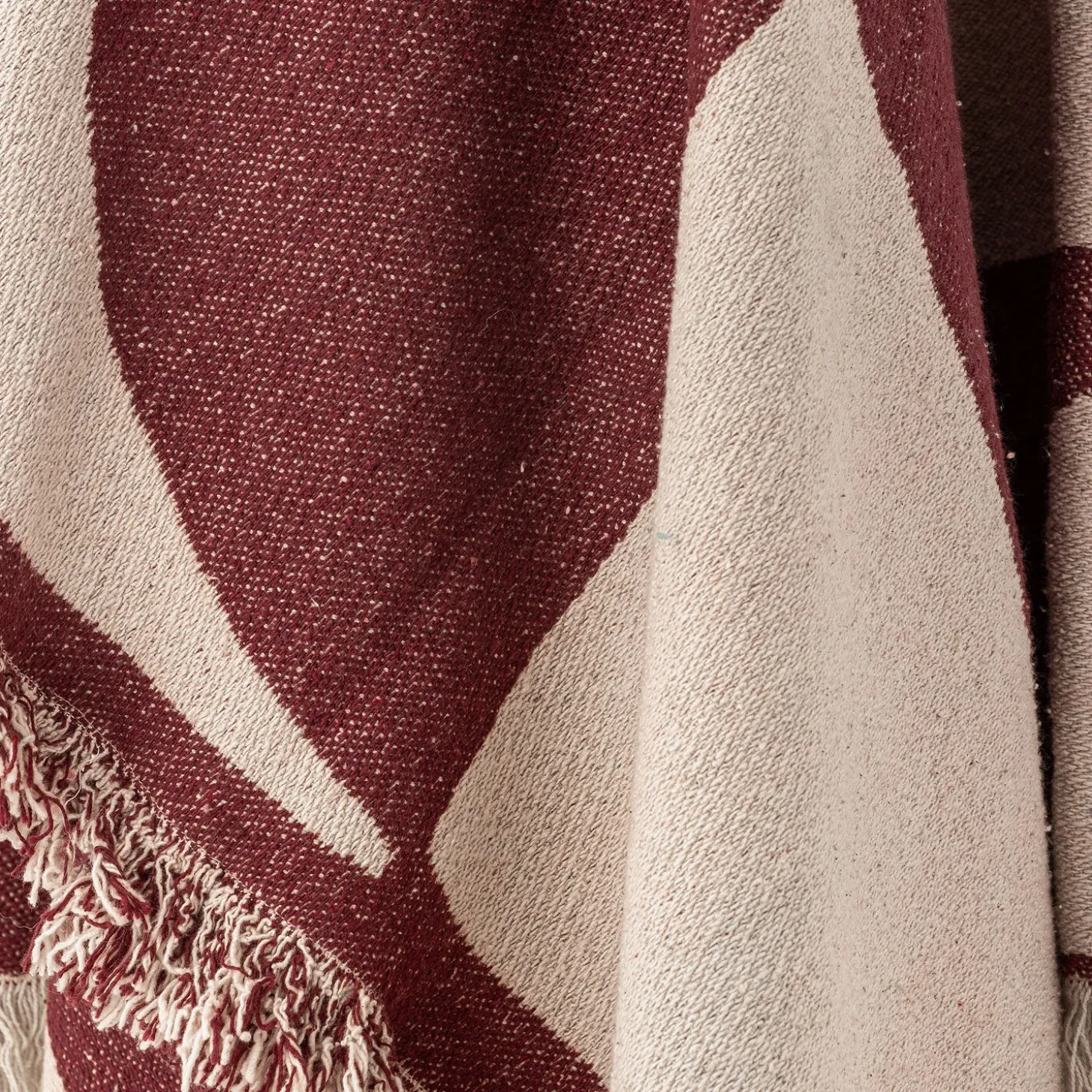 Denne dobbeltvævede plaid giver dig to udtryk i ét produkt med rød forside og beige bagside. Størrelsen på 160 x 130 cm giver god dækning i sofaen eller lænestolen.