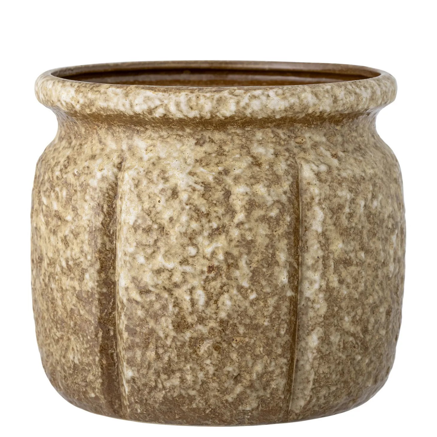 Bloomingville Ritza urtepotteskjuler i stentøj tilfører et strejf af rustik charme til dit hjem. Denne brune potteskjuler med en diameter på 20,5 cm og en højde på 18 cm er ideel til mellemstore planter og krydderurter. Den håndlavede produktionsproces resulterer i naturlige variationer i glasurens farve, hvilket gør hver potteskjuler til et interessant indslag i din indretning.