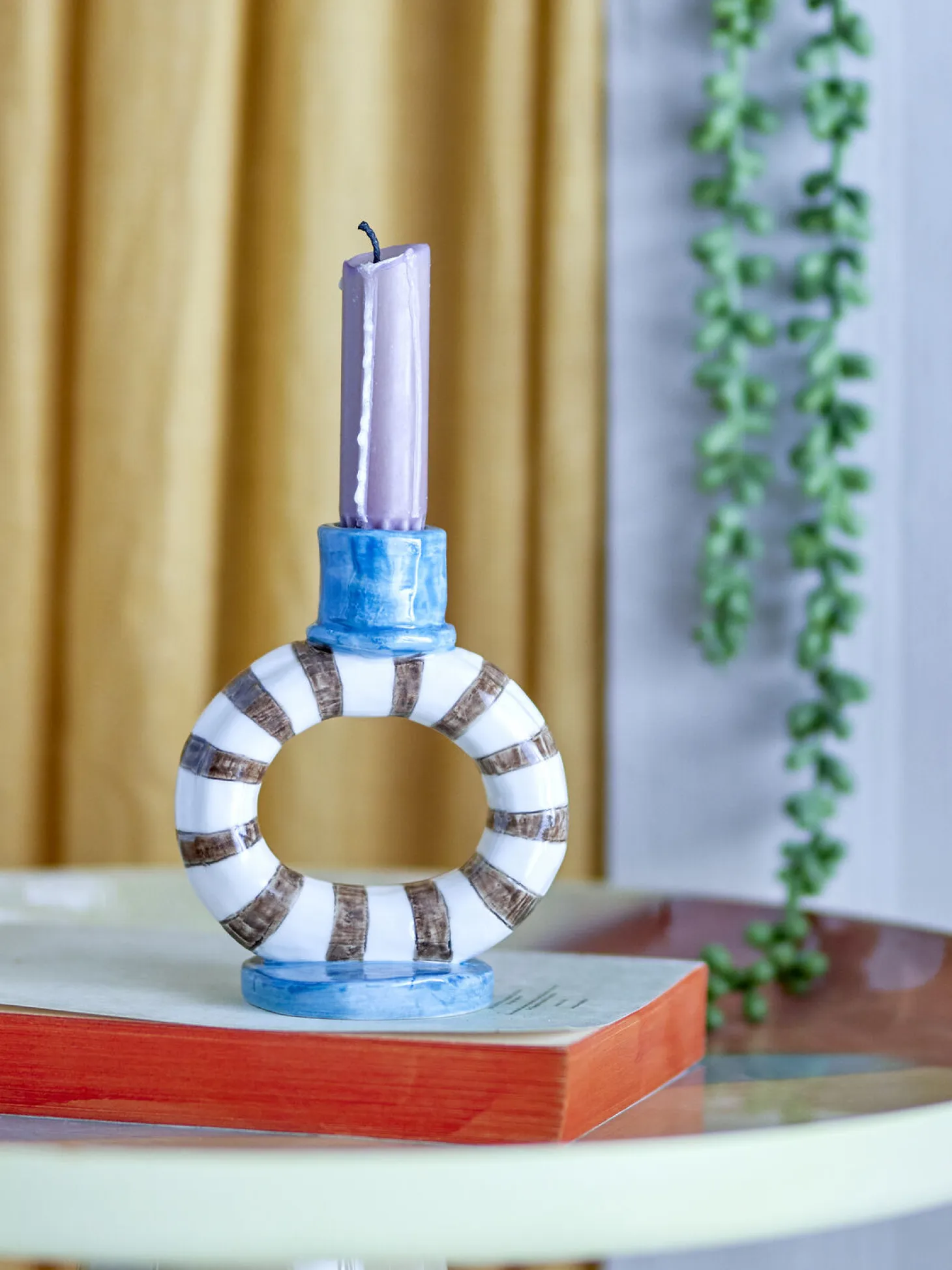 Stentøj er anerkendt for sin holdbarhed, men du skal være opmærksom på, at hver lysestage er forskellig. Der kan forekomme naturlige variationer i farveintensiteten, særligt i de blå områder og de hånddekorerede striber.