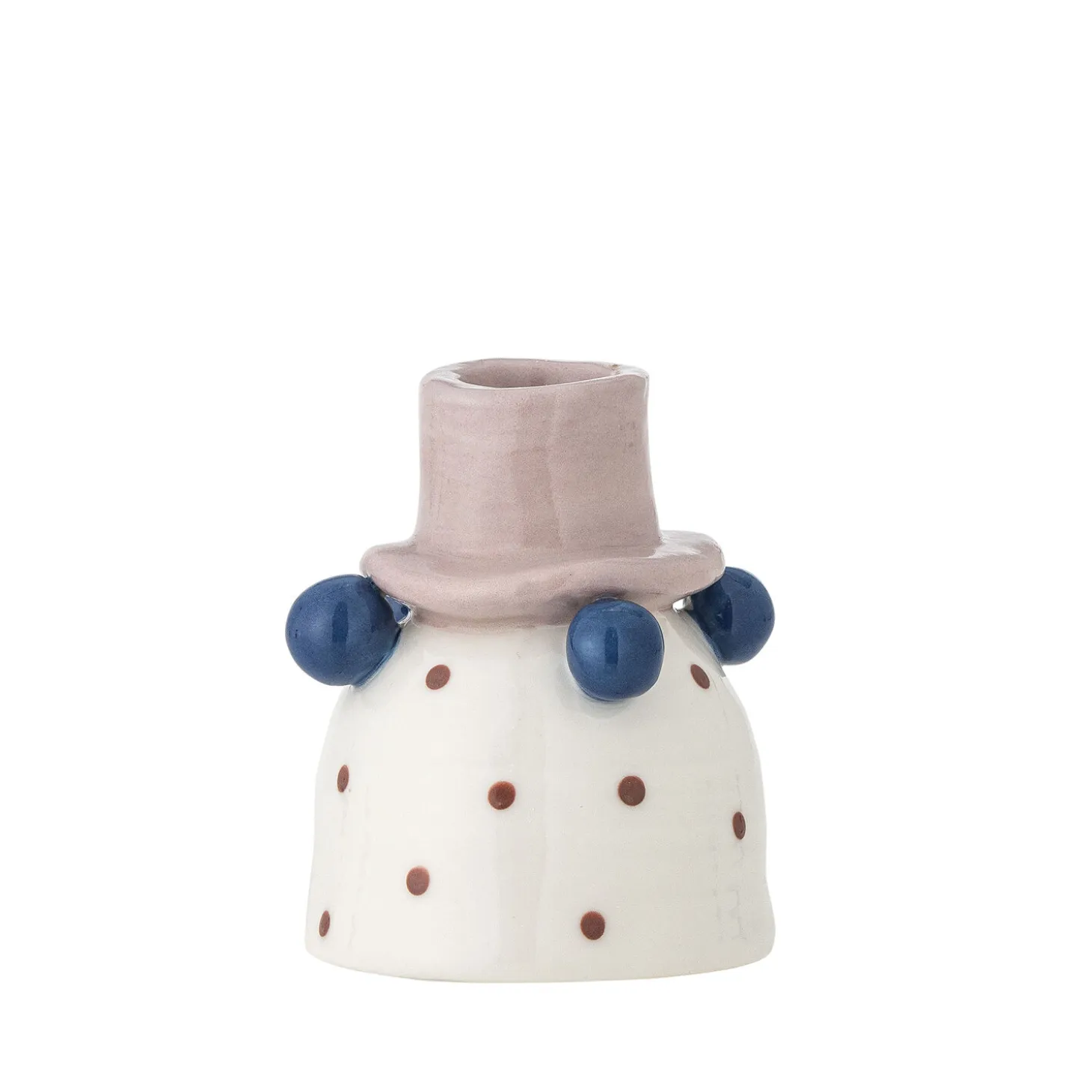 Denne lysestage fra Bloomingville har en hvid base med røde prikker, rosa top og blå kugler. Stentøjet giver lysestagen holdbarhed, mens designet tilføjer et særligt præg til indretningen.