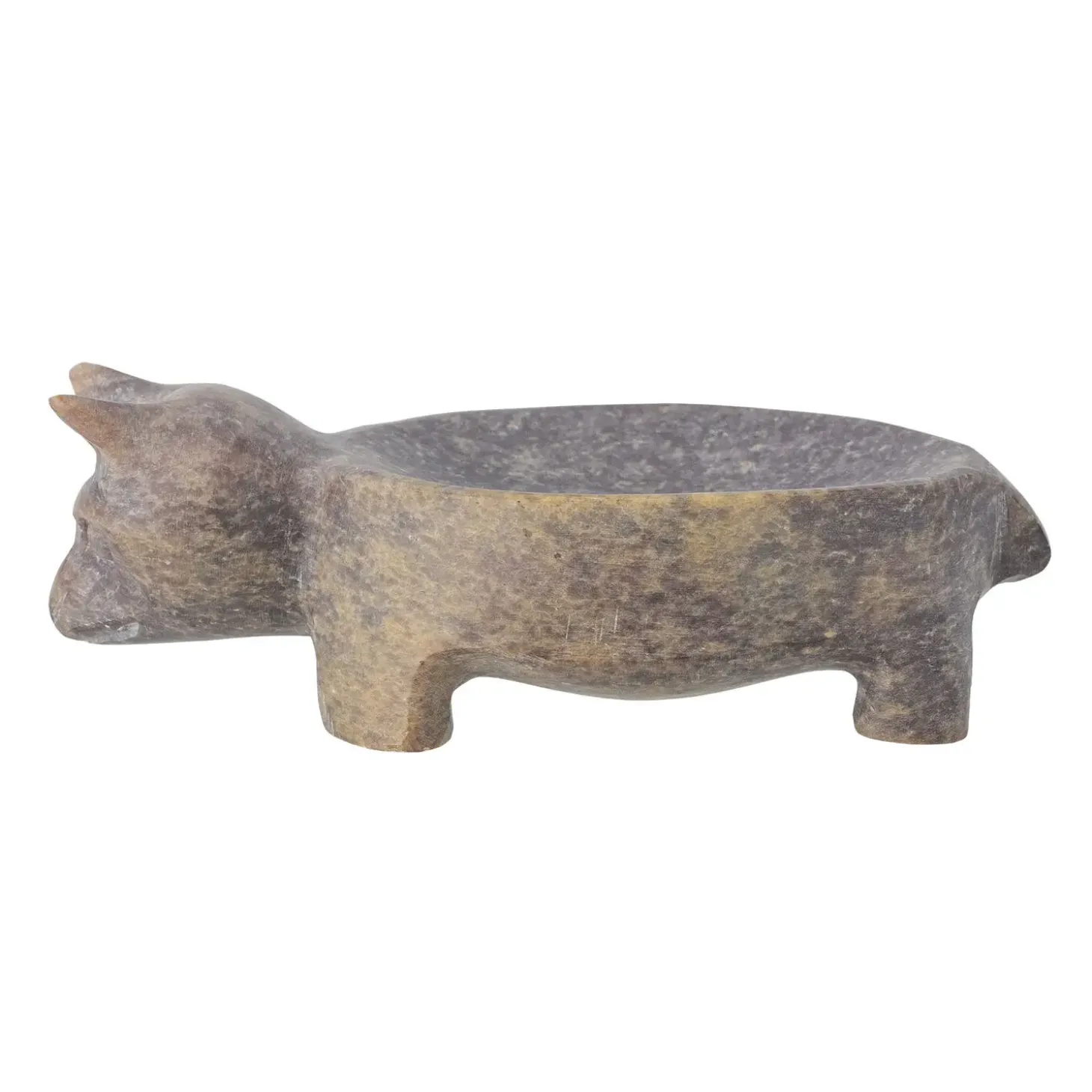 Denne håndlavede skål i fedtsten kombinerer det praktiske med det kunstneriske. Den katteinspirerede form giver din servering et særligt udtryk, mens materialet sikrer holdbarhed i hverdagen. Med målene 12,5 x 8 x 4,5 cm passer skålen til forskellige serveringsformål.
