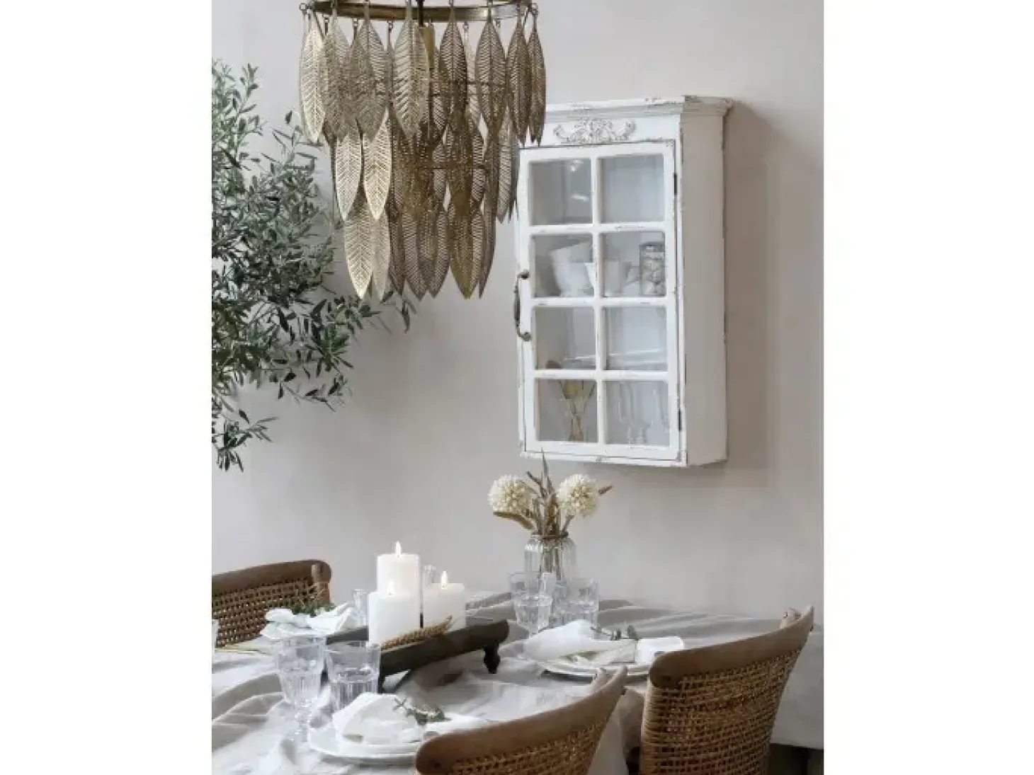 Super flot lampe i antique messing fra Chic Antique. Lampen har smukke detaljer og de små blade giver et helt unikt udseende. Lampen kan bruges forskellige steder i din indretning. Den ville være rigtig fin som spisebordslampe, men vil også kunne hænges i et hjørne og bruges som hyggebelysning. Lampen findes også i en mindre udgave.