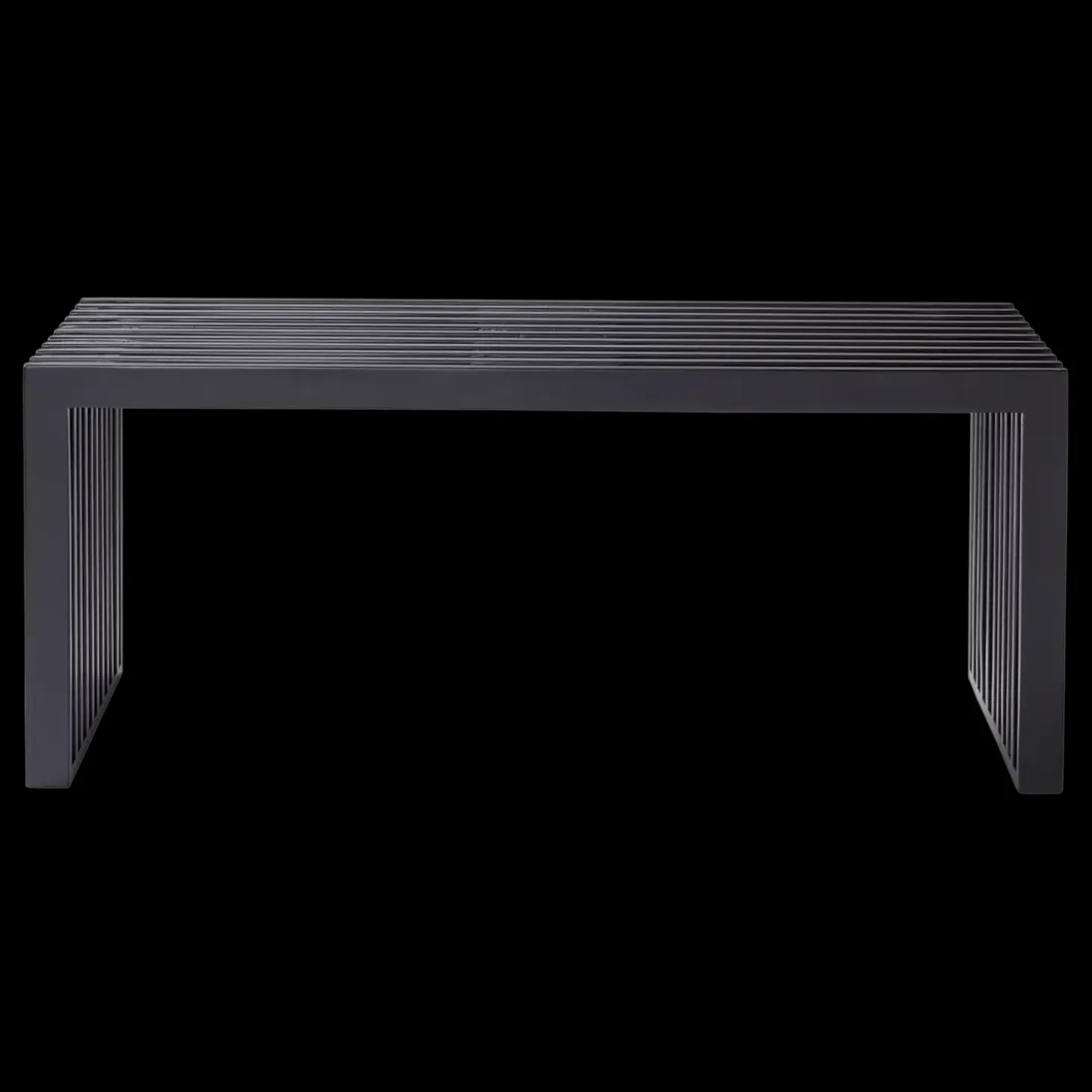 Cinas – Rib bænk udmærker sig ved sin robuste konstruktion og æstetiske appel. Den ribbede overflade tilfører visuel interesse og bidrager til bænkens struktur og ventilation. Den matte sorte finish giver et sofistikeret look, der passer ind i forskellige indretningsstile.