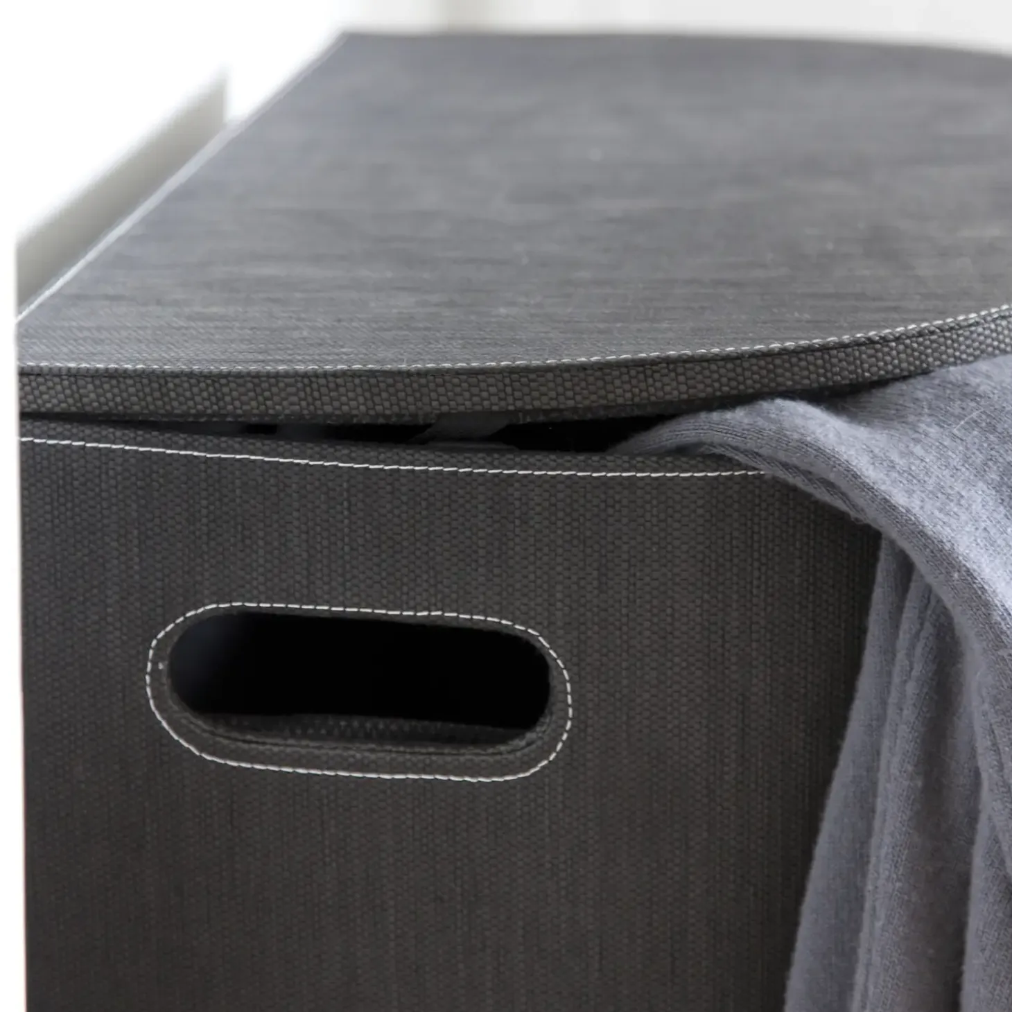 - Vasketøjskurven er lavet af sorte papirfibre og pap