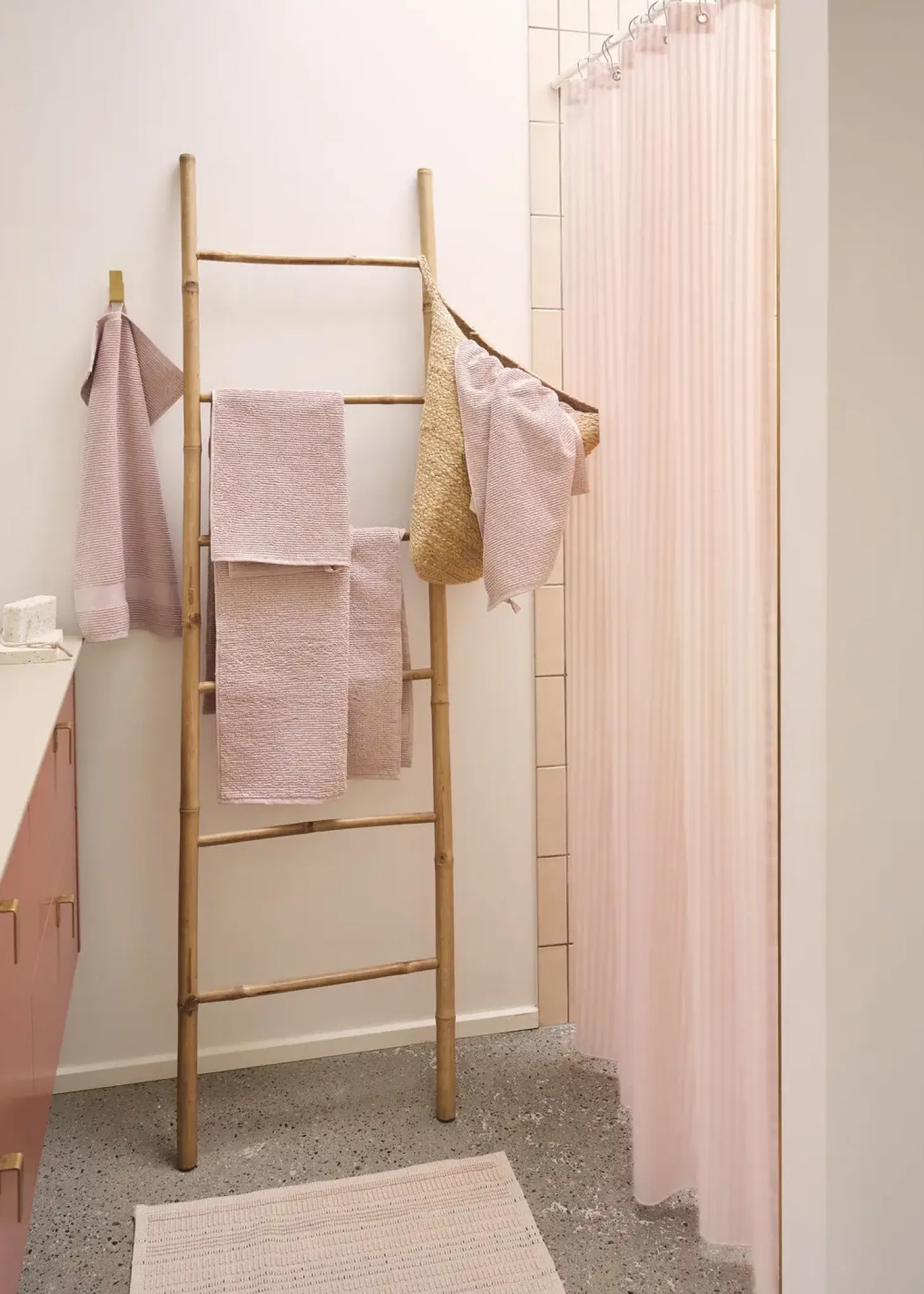 Det lette stof gør badeforhænget nemt at håndtere i hverdagen. De vævede striber i den rosa nuance bibeholder deres udseende vask efter vask, så du kan nyde det stilrene udtryk i lang tid.