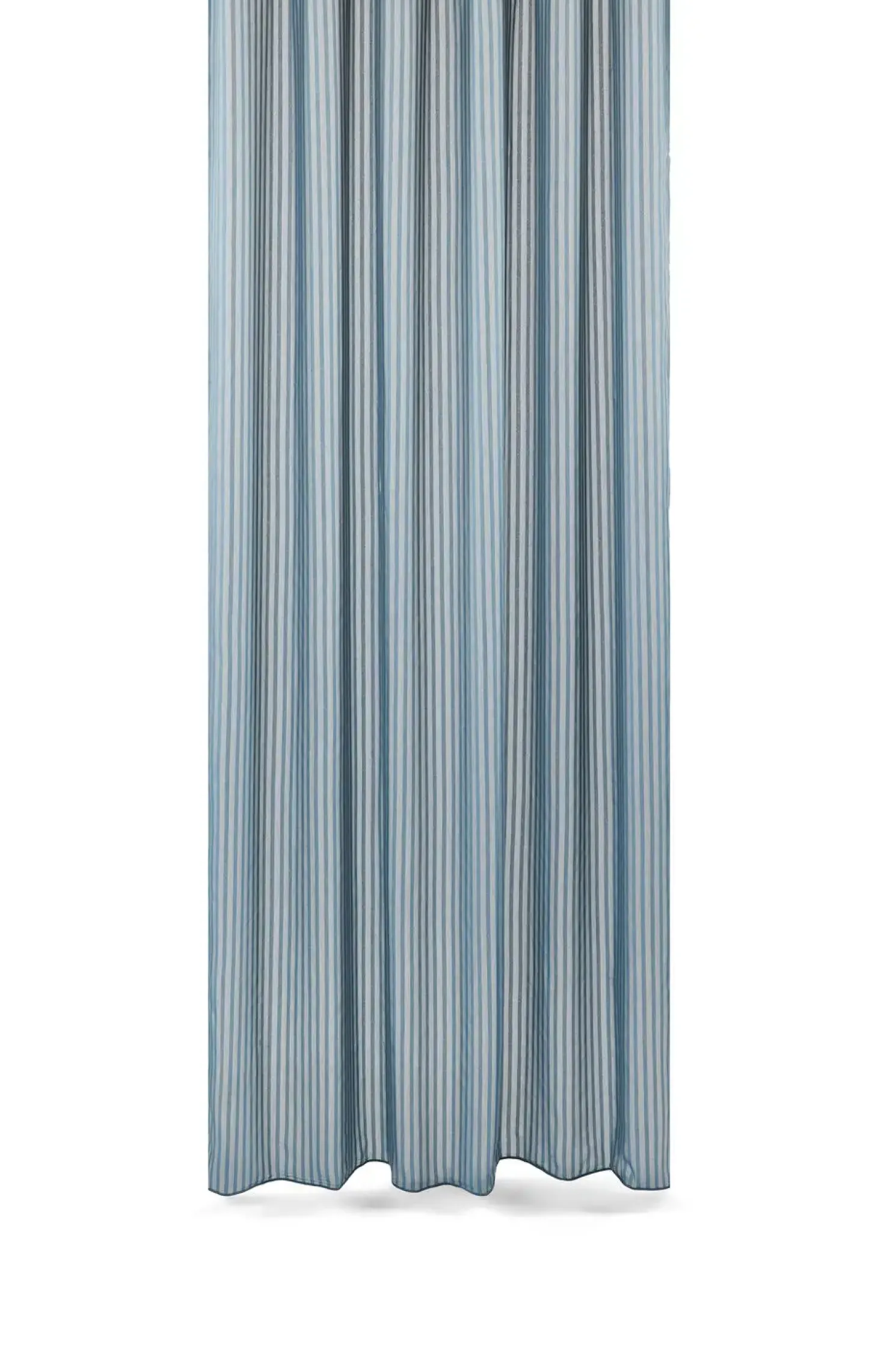 Dette badeforhæng med lodrette striber i havblå nuancer bringer ro til dit badeværelse. Det er syet med rynkebånd, der sikrer et naturligt fald og gør ophængning nemt. De transparente tone-i-tone striber skaber en behagelig dybdevirkning.