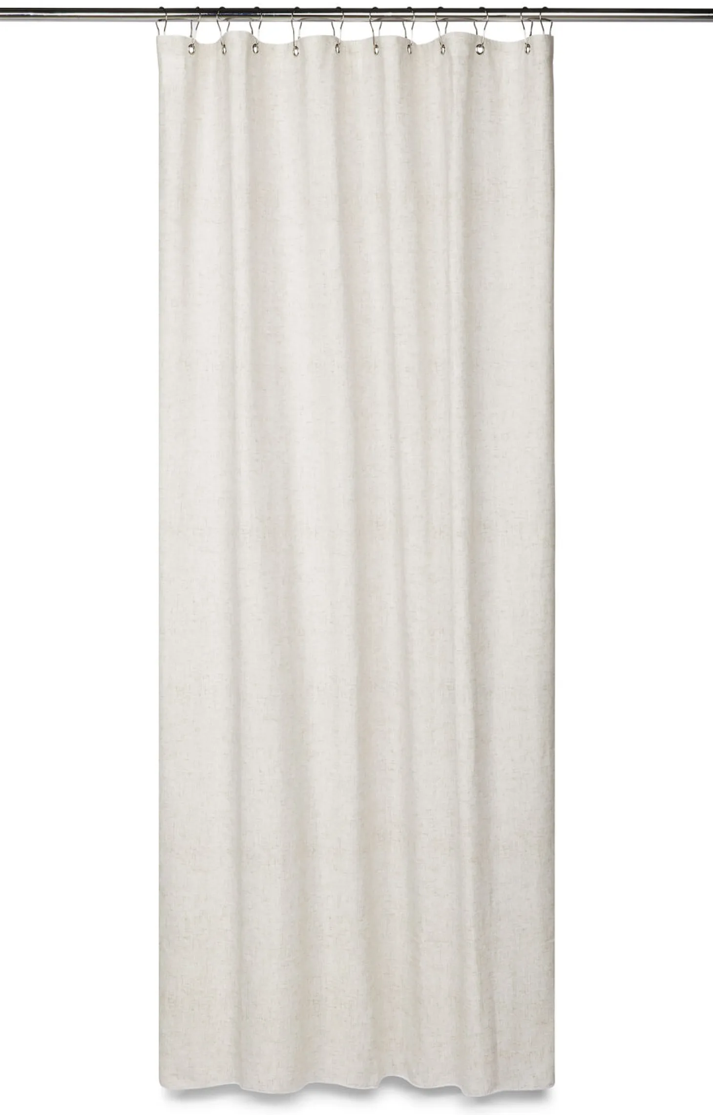 Forhænget er designet med praktiske metaløjer, der sikrer nem montering og et jævnt fald. Bemærk, at kroge til ophængning skal købes separat. Den lyse beige farve og hør-looket skaber en rolig stemning i badeværelset.