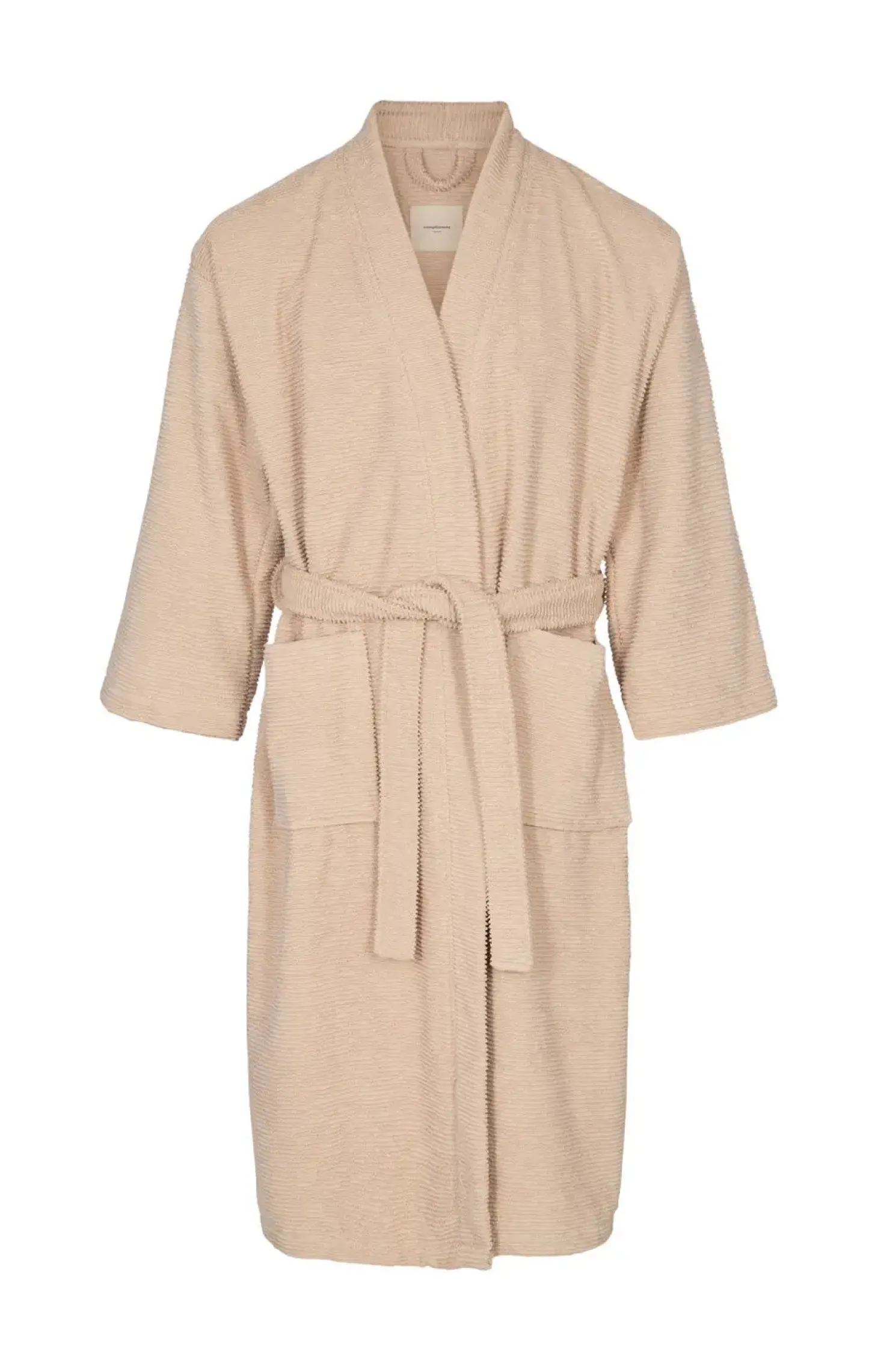 Du får dybe forlommer til småting og et bælte til at binde om taljen. Badekåben er fremstillet uden skadelige kemikalier, hvilket gør den særligt velegnet til dig, der værdsætter naturlige materialer tæt på kroppen.