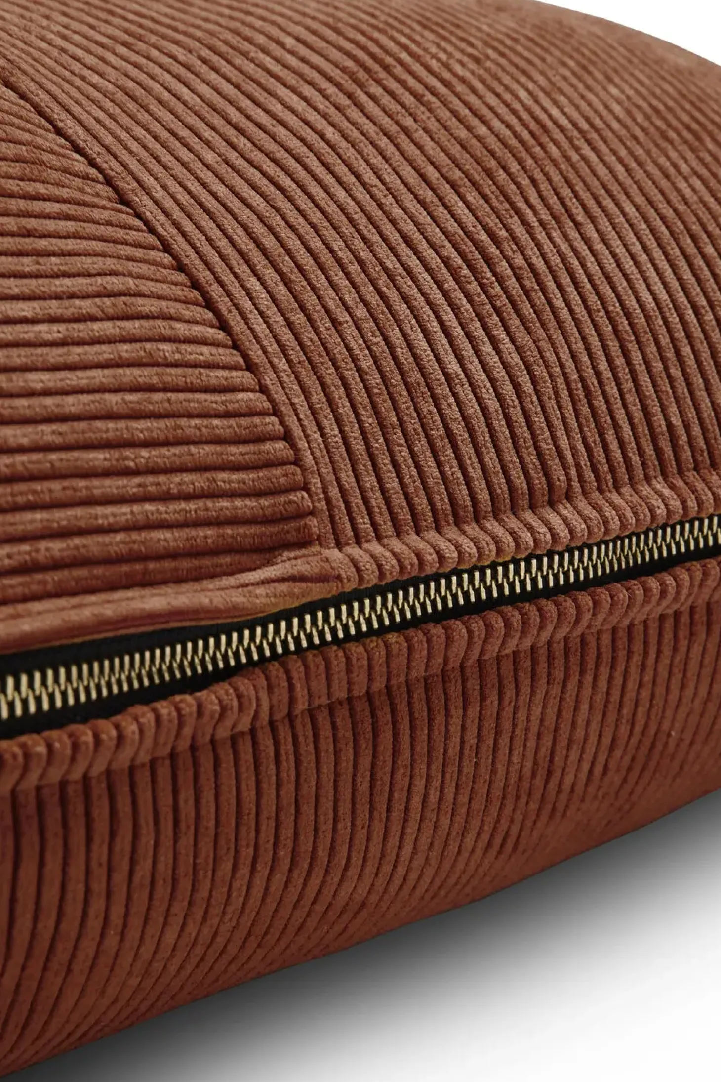 Trendy cut & sew fløjlspude med synlig messing lynlås. Wille findes i et utal af farver og størrelser.