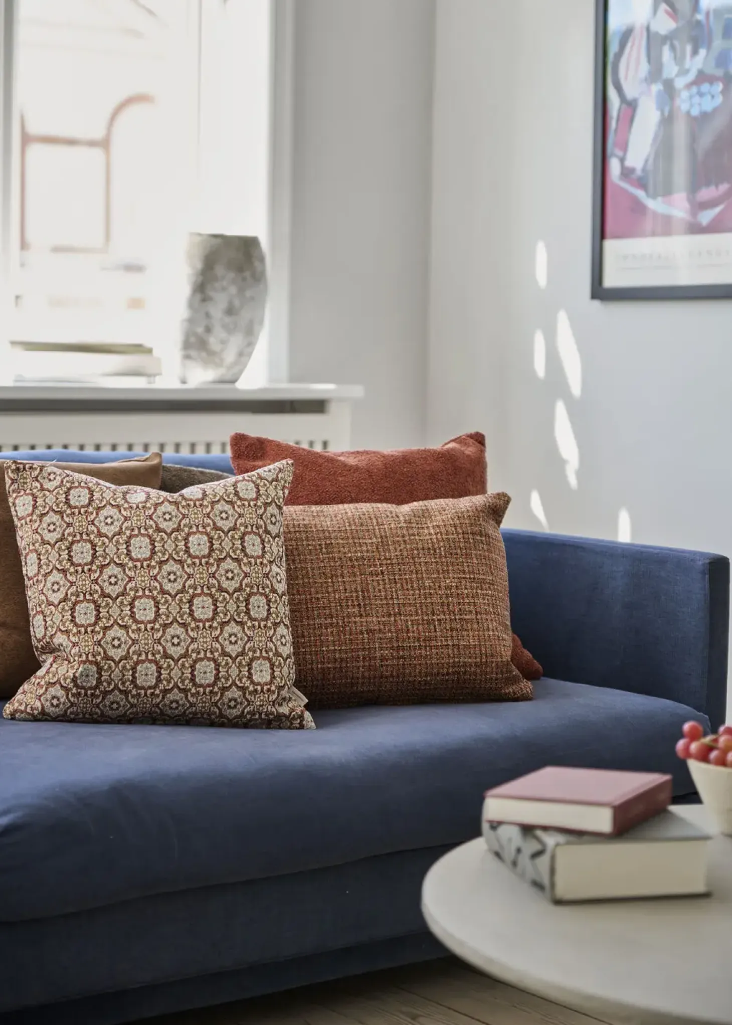 Med et sirligt orientalsk mønster i nuancer af rust, okker og sart blå skaber den fine Zepa pude en særlig varm stemning. Eksklusiv jacquardvævet pude.