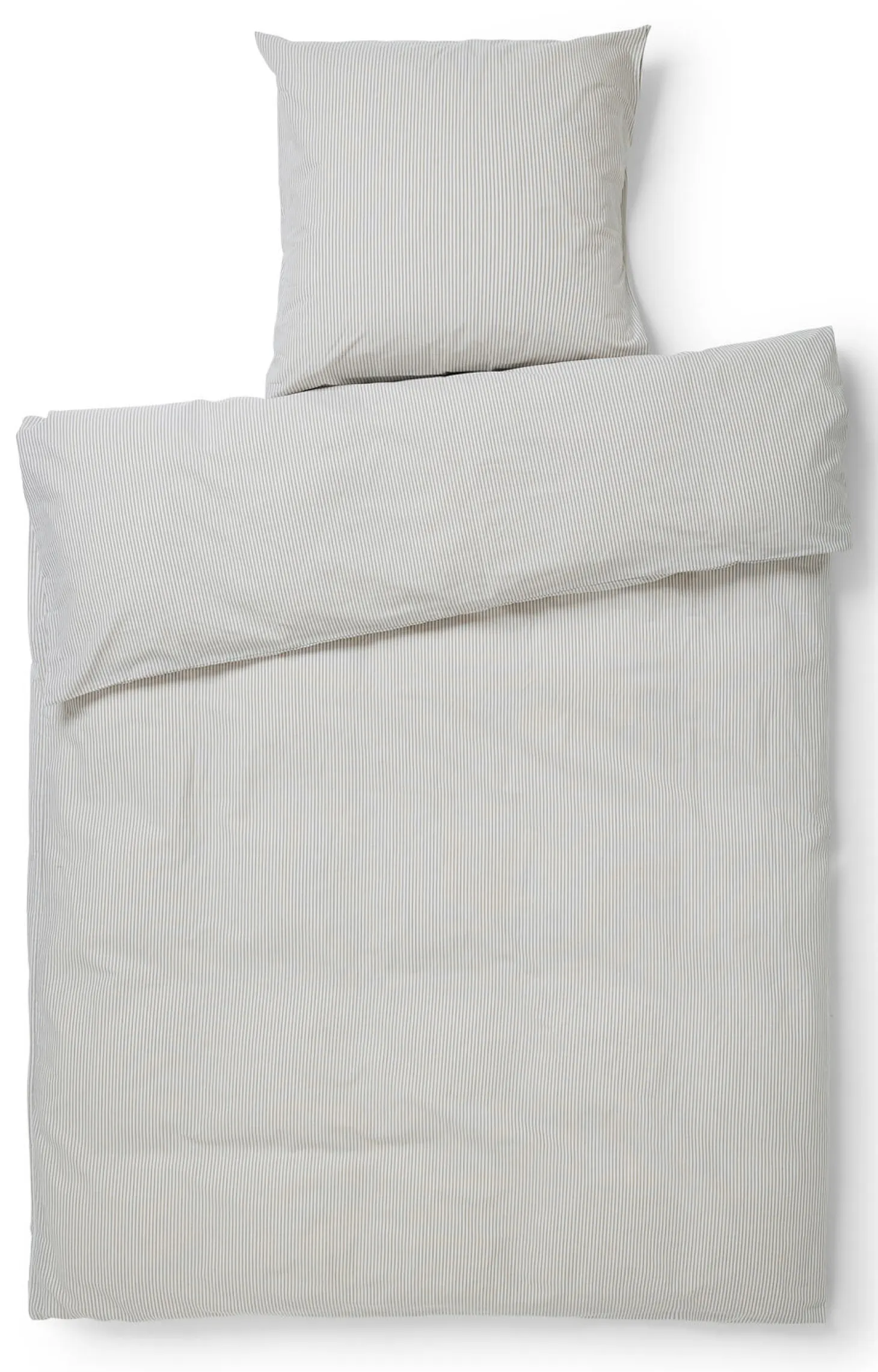 Fine, smalle striber i sand og grå giver det luksuriøse, GOTS-certificerede sengetøj i blød økologisk bomuld et klassisk, afslappet udtryk med et moderne twist. Med Kyst Organic sengetøj kan du forny soveværelset med god samvittighed.