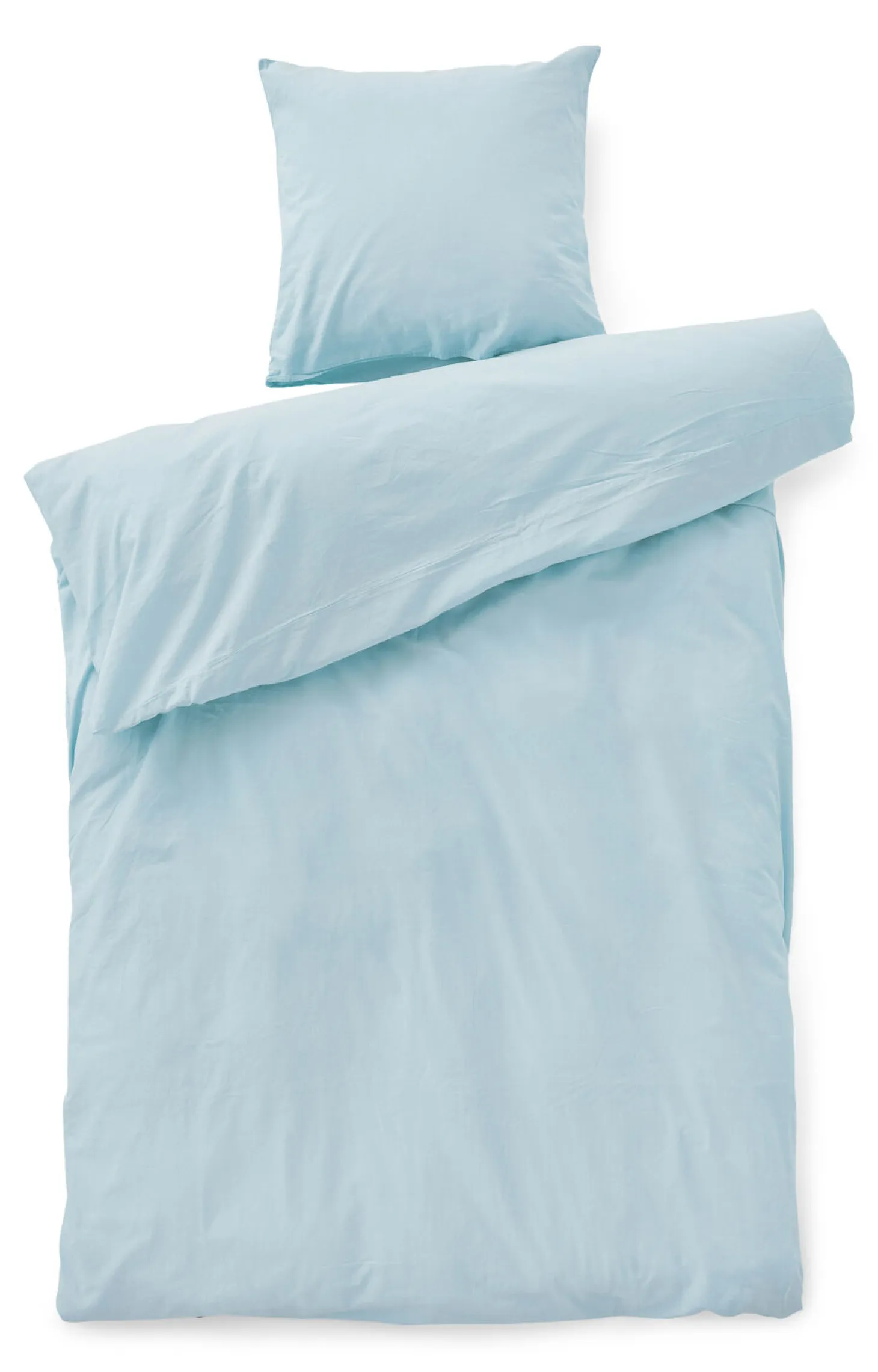 Dynebetrækket er udstyret med transparente knapper, der giver et diskret look, mens pudebetrækket har en praktisk kuvertlukning. Den himmelblå farve skaber en rolig stemning i soveværelset, og den stenvaskede overflade tilfører et særligt præg til dit sengemiljø.