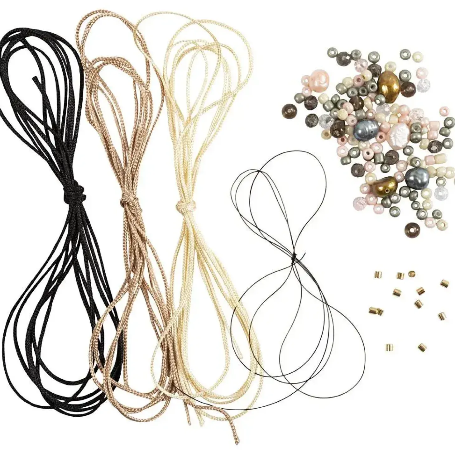 Indhold: Ferskvandsperler, glasfacetperler, glasperler, rocaiperler, smykketråd, knyttesnor, klemmeperler.