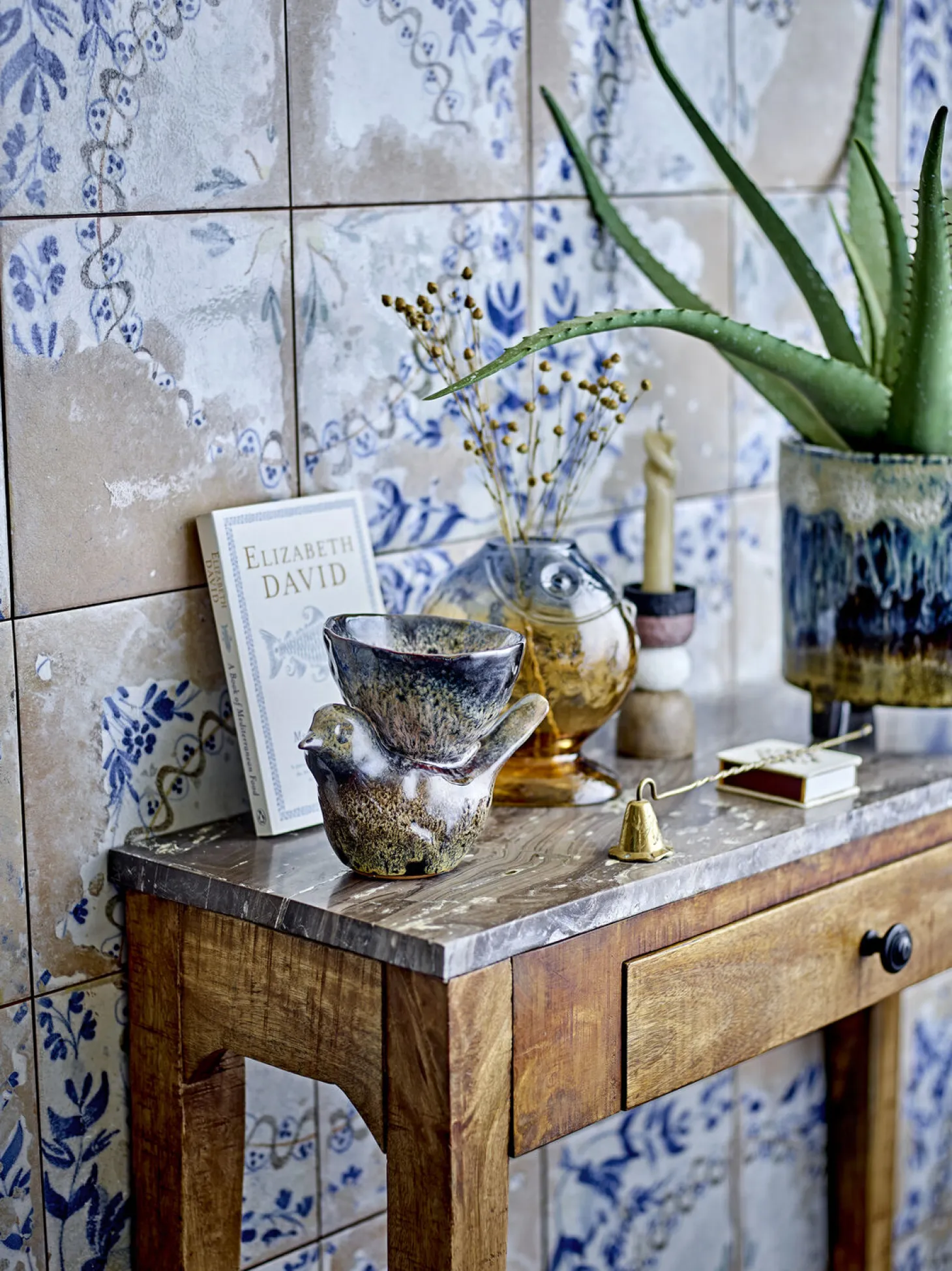 Phil Deco by Creative Collection er med sin fængslende reaktive glasur i blå og brune farver og kreativt design et smukt dekorativt objekt til hjemmet. En lille fugl med en skål på ryggen. Brug skålen til stilfuld servering eller til at holde styr på dine yndlingssmykker. På grund af glasurens beskaffenhed kan der forekomme farvevariationer, og hver stil vil være unik.