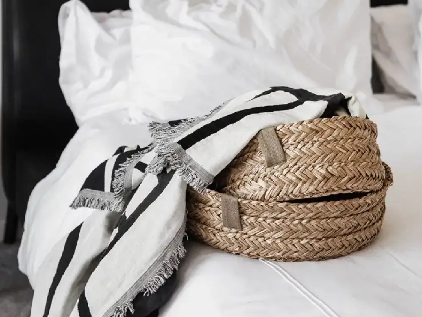 Disse runde kurve er håndlavet af søgræs, et naturligt materiale, der er både let og holdbart. Søgræs har længe været brugt i håndværk og giver kurvene et varmt, organisk udseende, der passer ind i de fleste hjem. Sættet indeholder to kurve, som kan bruges til opbevaring på bordet, i skabet eller som dekorative elementer.