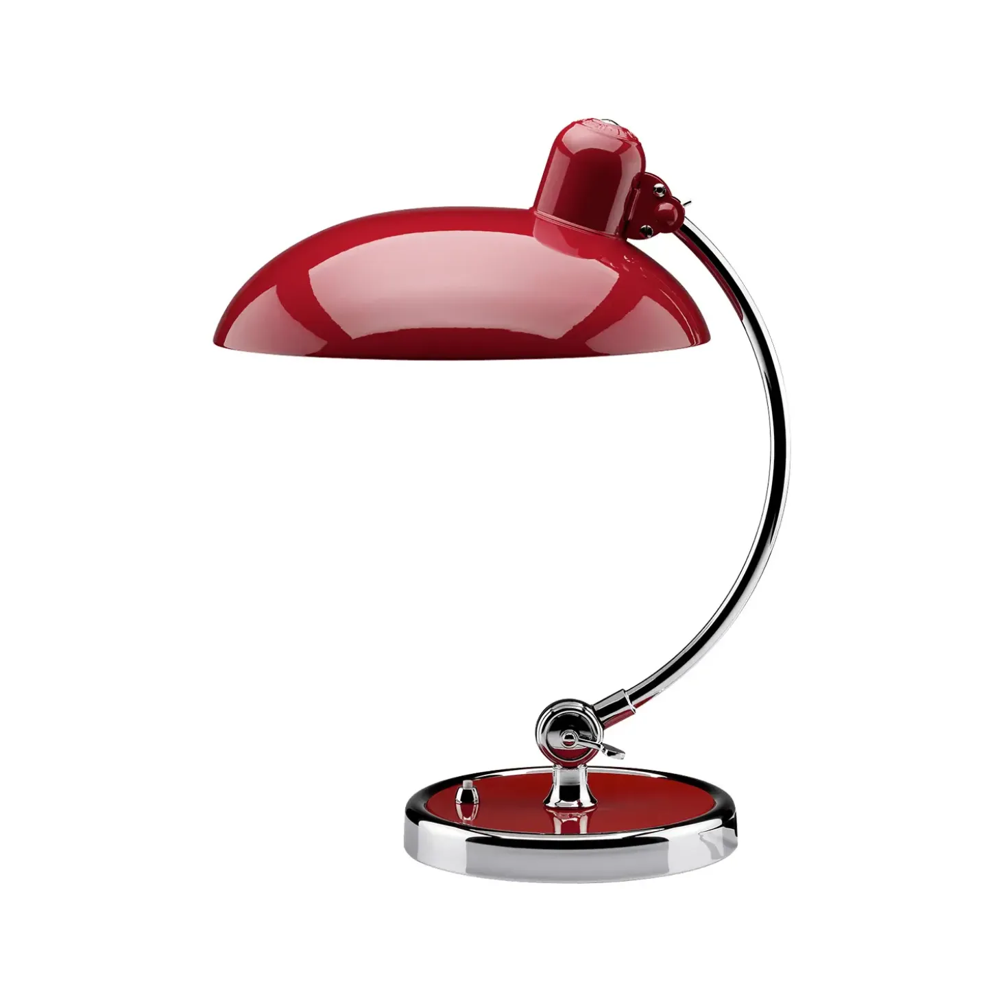 KAISER Idell 6631-T bordlampen i Ruby Red/krom fra Fritz Hansen er et ikon inden for Bauhaus-design. Designet af Christian Dell kombinerer lampen elegant form og funktion, hvilket gør den til et tidløst valg for enhver indretning. Med en højde på 42,5 cm og en diameter på 28,5 cm passer den ideelt på skrivebordet eller natbordet.