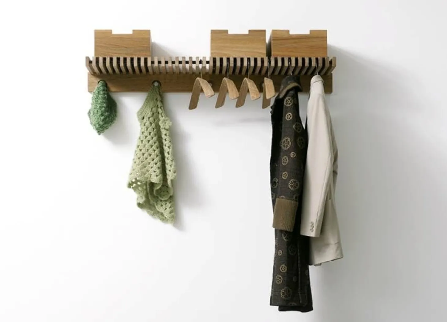 Fremstillet i teak, et træ der er berømt for sin naturlige modstandsdygtighed mod slid og fugt. Teaktræet sikrer, at garderoben holder i mange år, selv ved daglig brug. Med fem knager, en integreret bøjlestang og en hattehylde får du flere måder at organisere jakker, tasker og småting på.