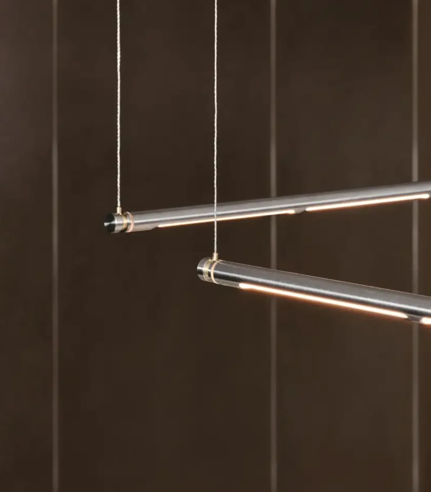 Den fås i rustfrit stål, børstet messing og sort PVD-belagt stål, hvilket giver en elegant og moderne finish. Hver Oneline™-pendel leveres med en driver, der kan monteres både over og under loftet.