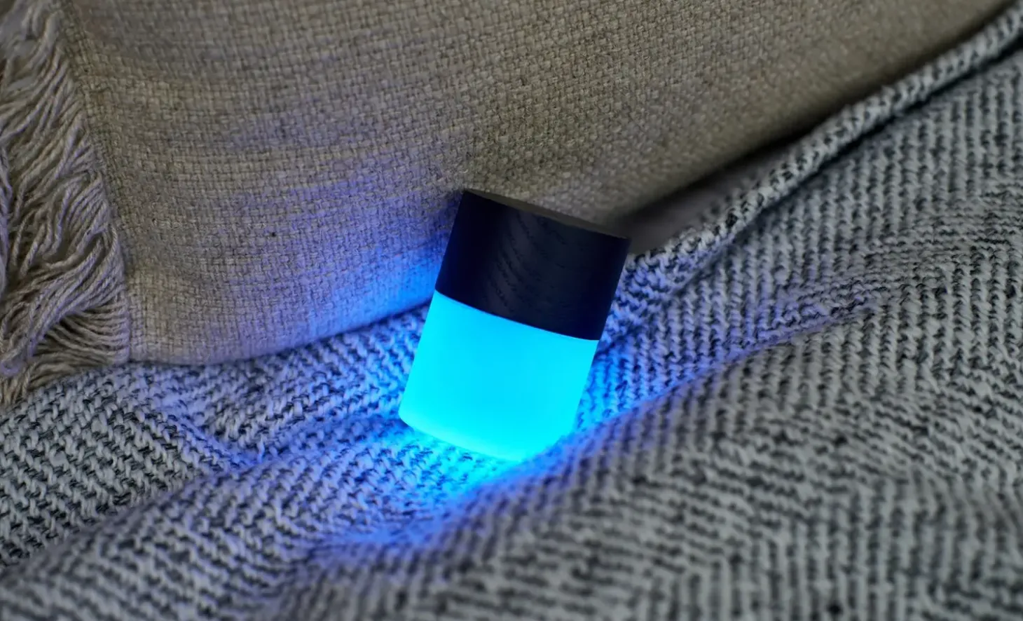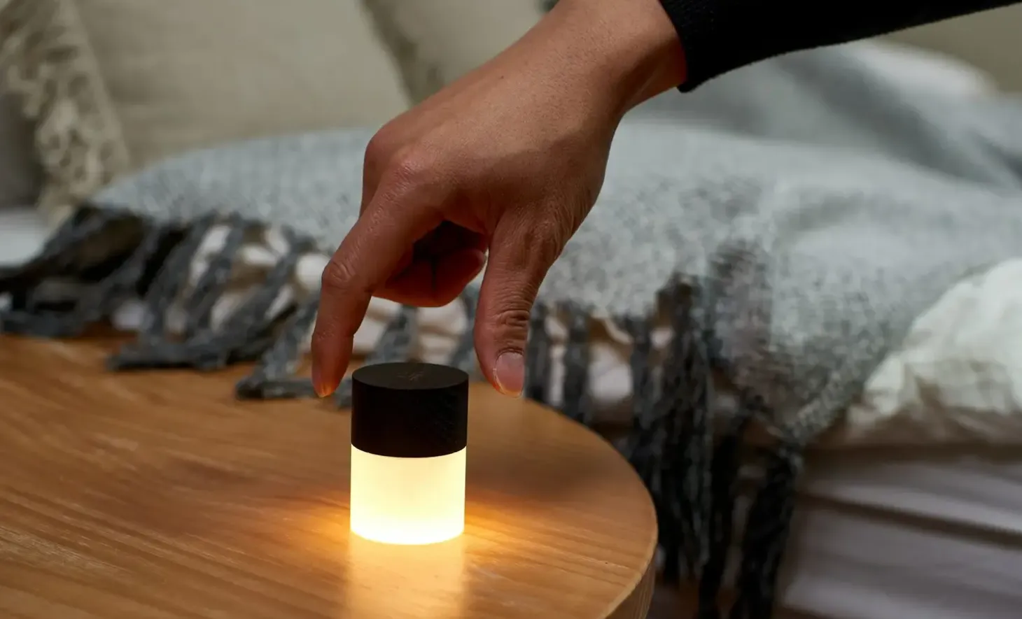 Lemelia Light er en kompakt lampe, der kombinerer funktionalitet med kunstnerisk design. Med en højde på kun 6 cm passer den ideelt til natbordet, skrivebordet eller enhver lille plads i dit hjem. Lampen skifter mellem syv livlige farver og udsender varmt hvidt lys gennem førsteklasses mat glas.