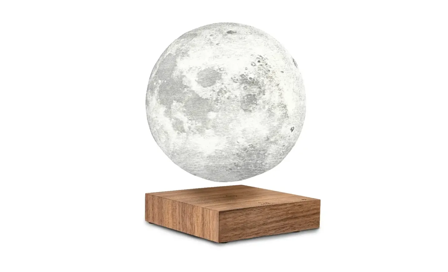 Denne svævende månelampe bringer en fascinerende detalje ind i dit hjem. Med en diameter på 14 cm svæver den 15-20 mm over basen, der er fremstillet i valnødtræ og måler 134 x 134 x 28 mm.
