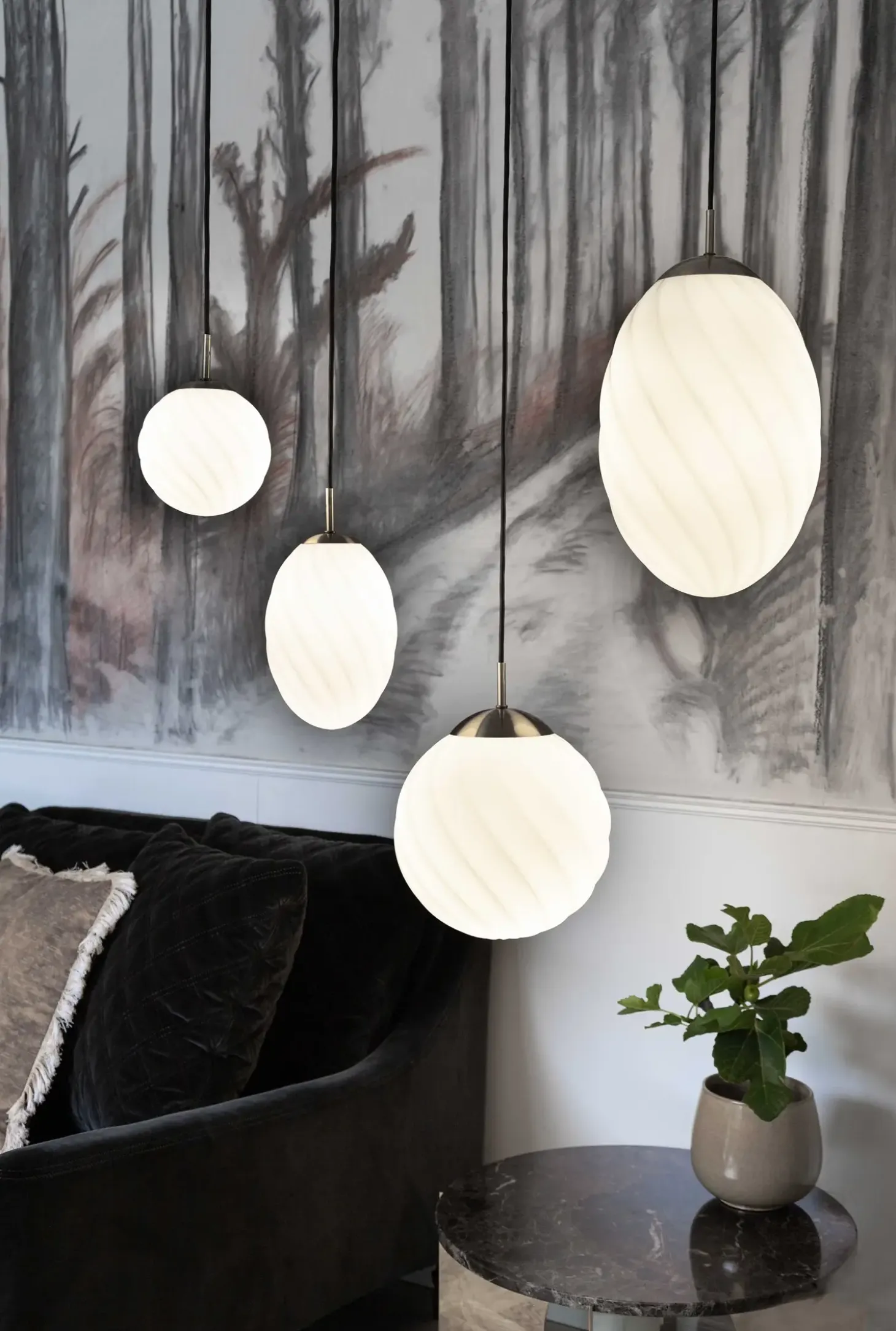 Denne elegante loftslampe giver lys og velvære i rummet.