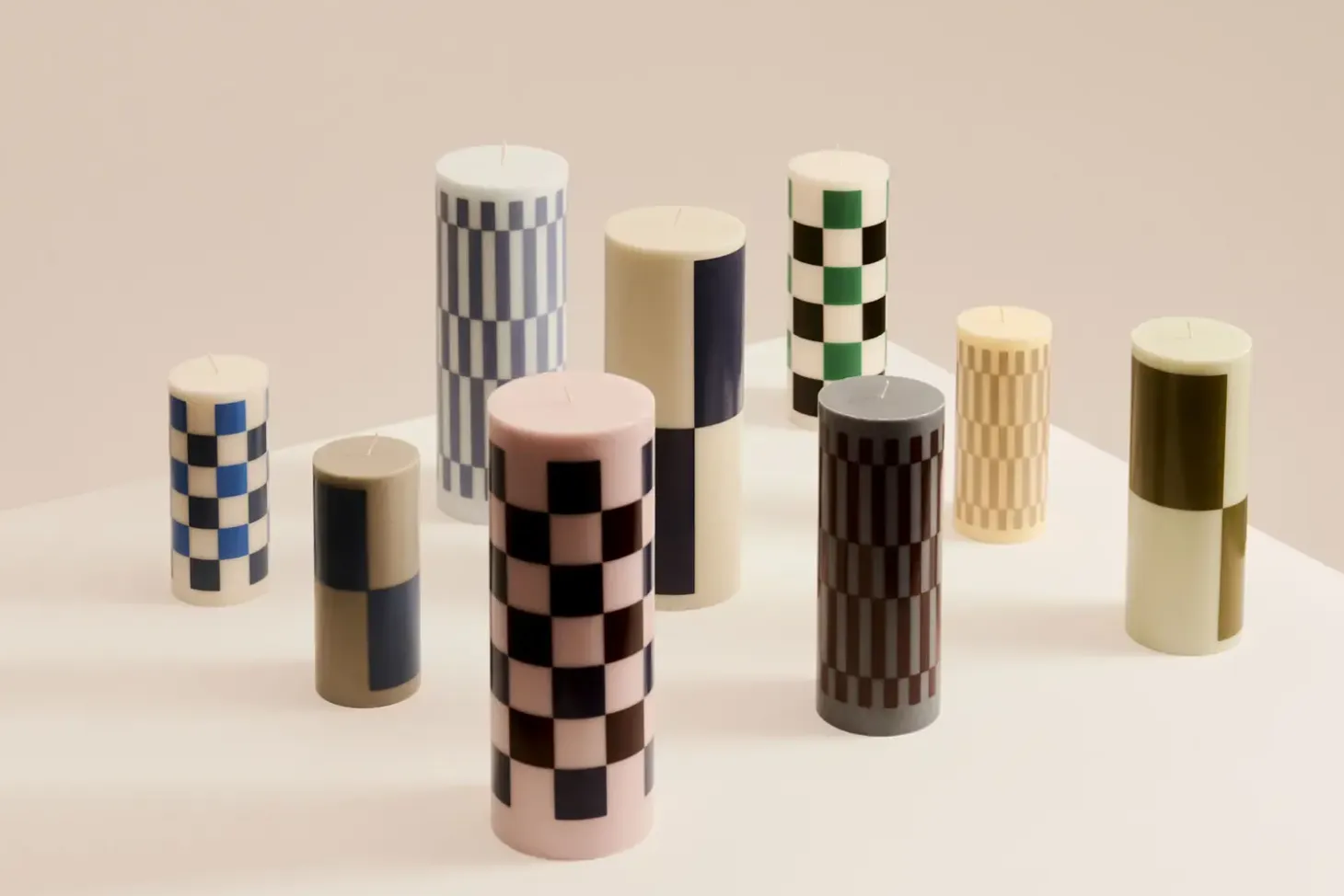 Dette todelte bloklys fra Hay kombinerer lysegrøn og armygrøn i et cylindrisk design. Formen og farverne gør lyset til et dekorativt element i hjemmet, både tændt og slukket.