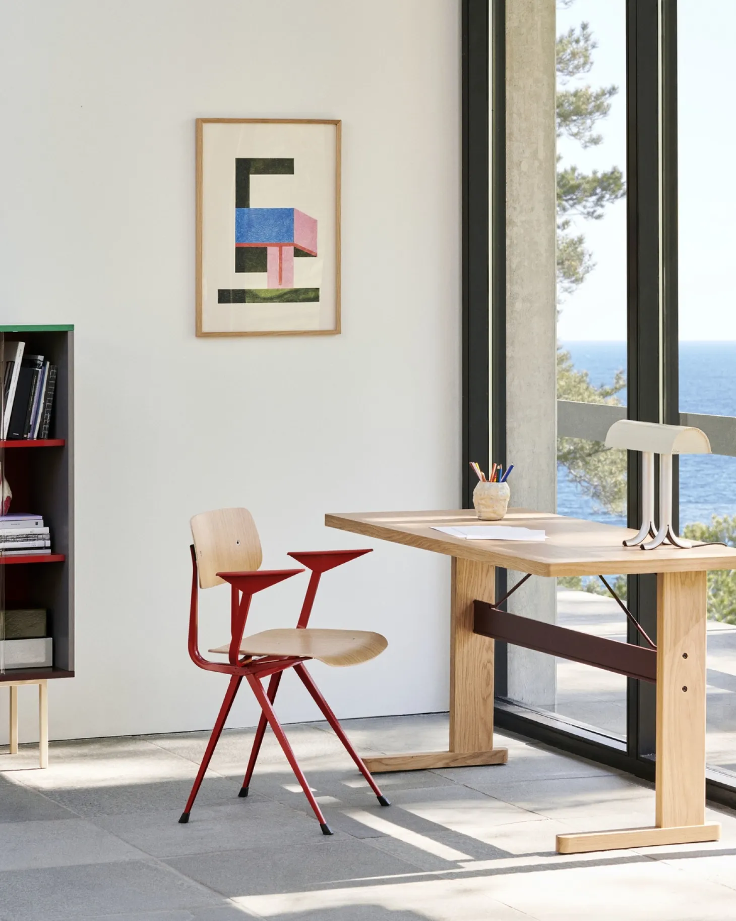 Det vådsprøjtede stål sikrer en holdbar konstruktion, der holder sig flot år efter år. Materialets overflade er nem at vedligeholde og bevarer sit udtryk, selv ved daglig brug på skrivebordet eller natbordet.