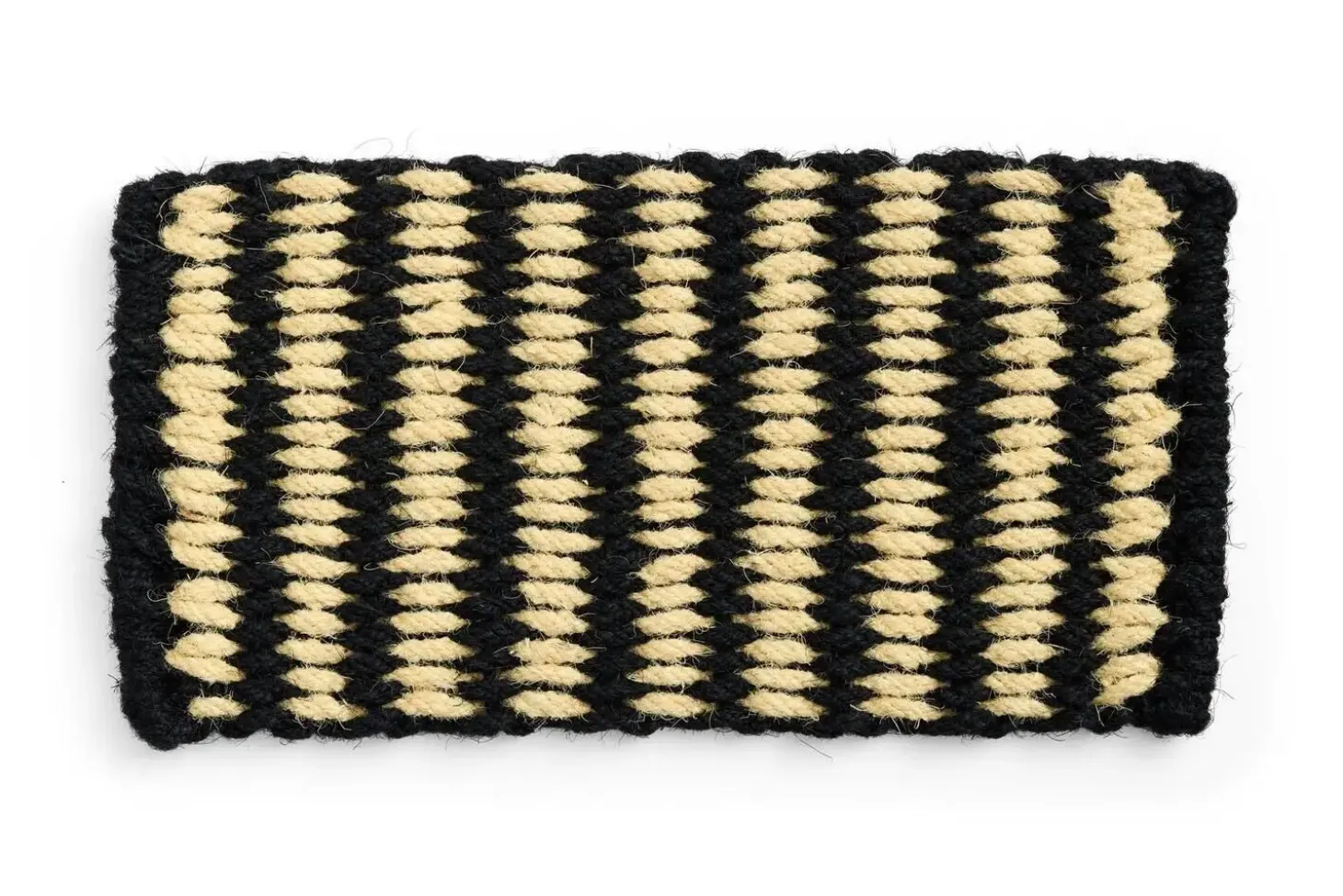 Dørmåtten fra Hay kommer i et klassisk sort og hvidt farveskema. Dette tidløse design passer ind i enhver indretning og tilføjer et strejf af stil ved din hoveddør. Kombinationen af sorte og hvide striber i en bølgeform skaber et dynamisk udtryk, der er både indbydende og elegant.