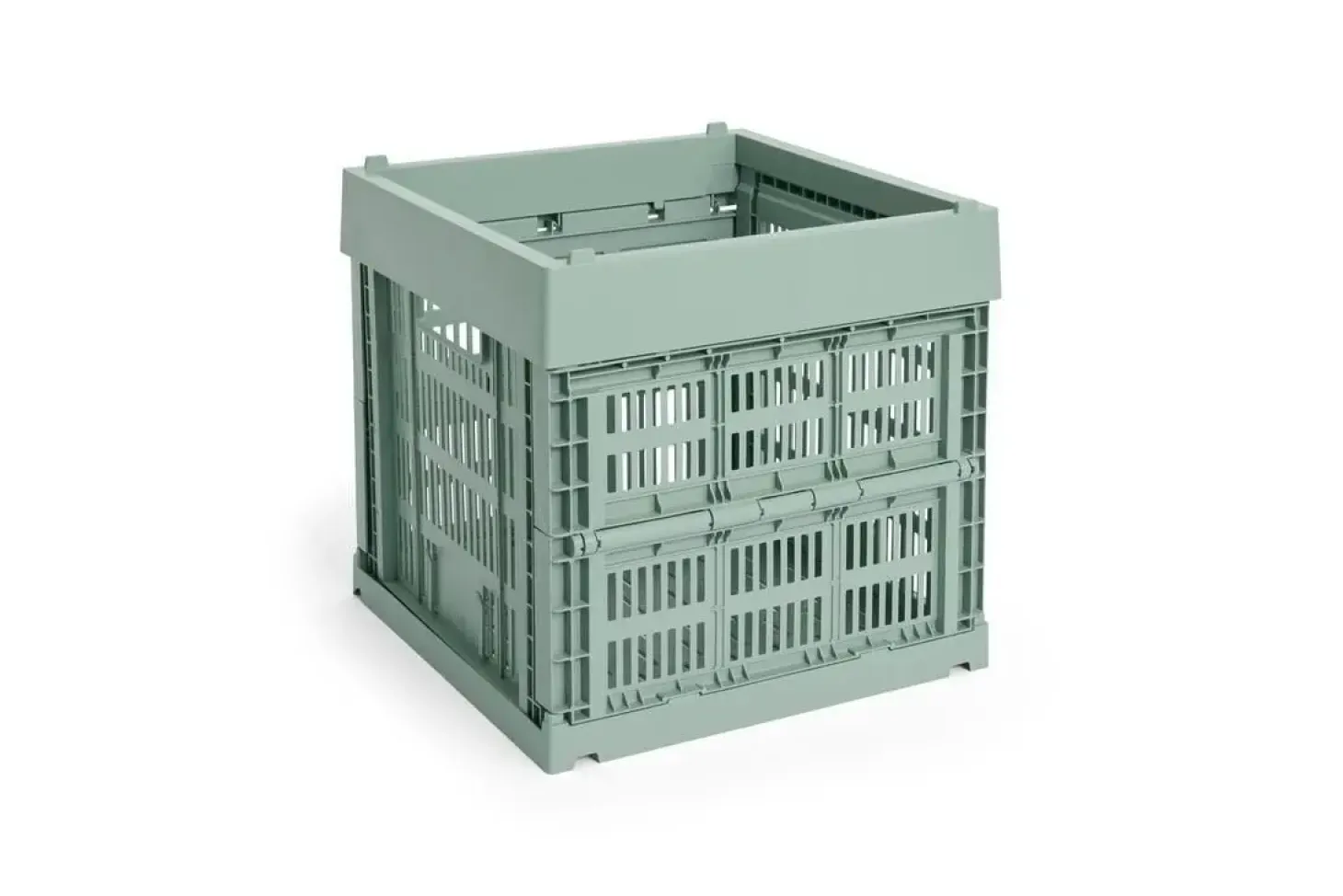 Denne kubiske opbevaringskasse fra HAY kombinerer praktisk design med god funktionalitet. Med perforerede sider sikres effektiv luftcirkulation, mens den stabelbare konstruktion giver dig fleksible muligheder for organisering af dit hjem.