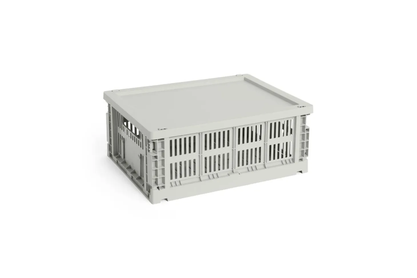 Denne praktiske opbevaringskasse fra HAY kombinerer smart design med gennemtænkt funktionalitet. Med et karakteristisk gittermønster på siderne og bunden sikrer kassen både god ventilation og stabilitet i din daglige brug.