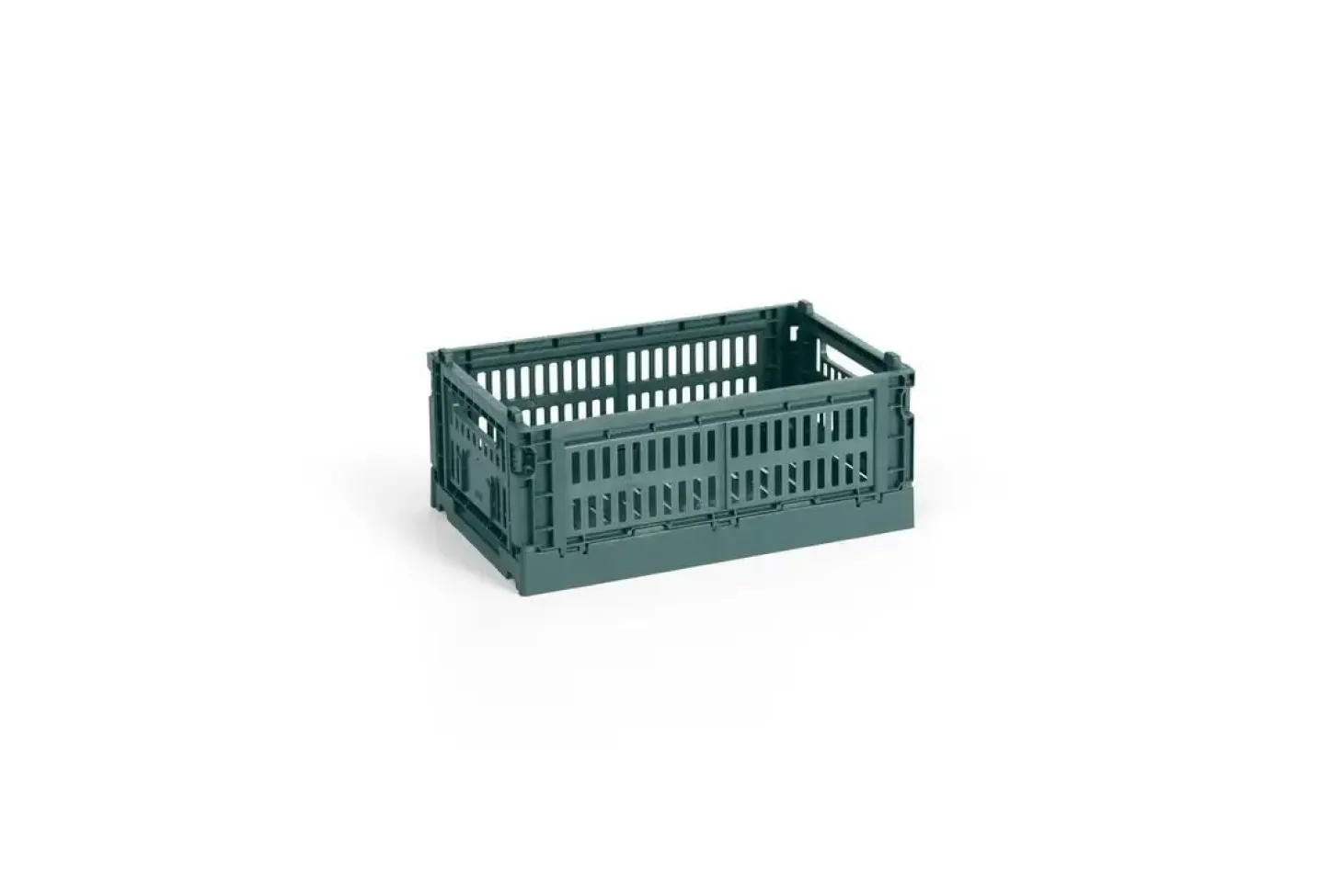 Kassens stabelbare design gør det muligt at bygge et organiseret opbevaringssystem efter dine behov. Den mørkegrønne farve tilfører et moderne touch til din indretning, mens den praktiske størrelse gør den ideel til mindre rum.