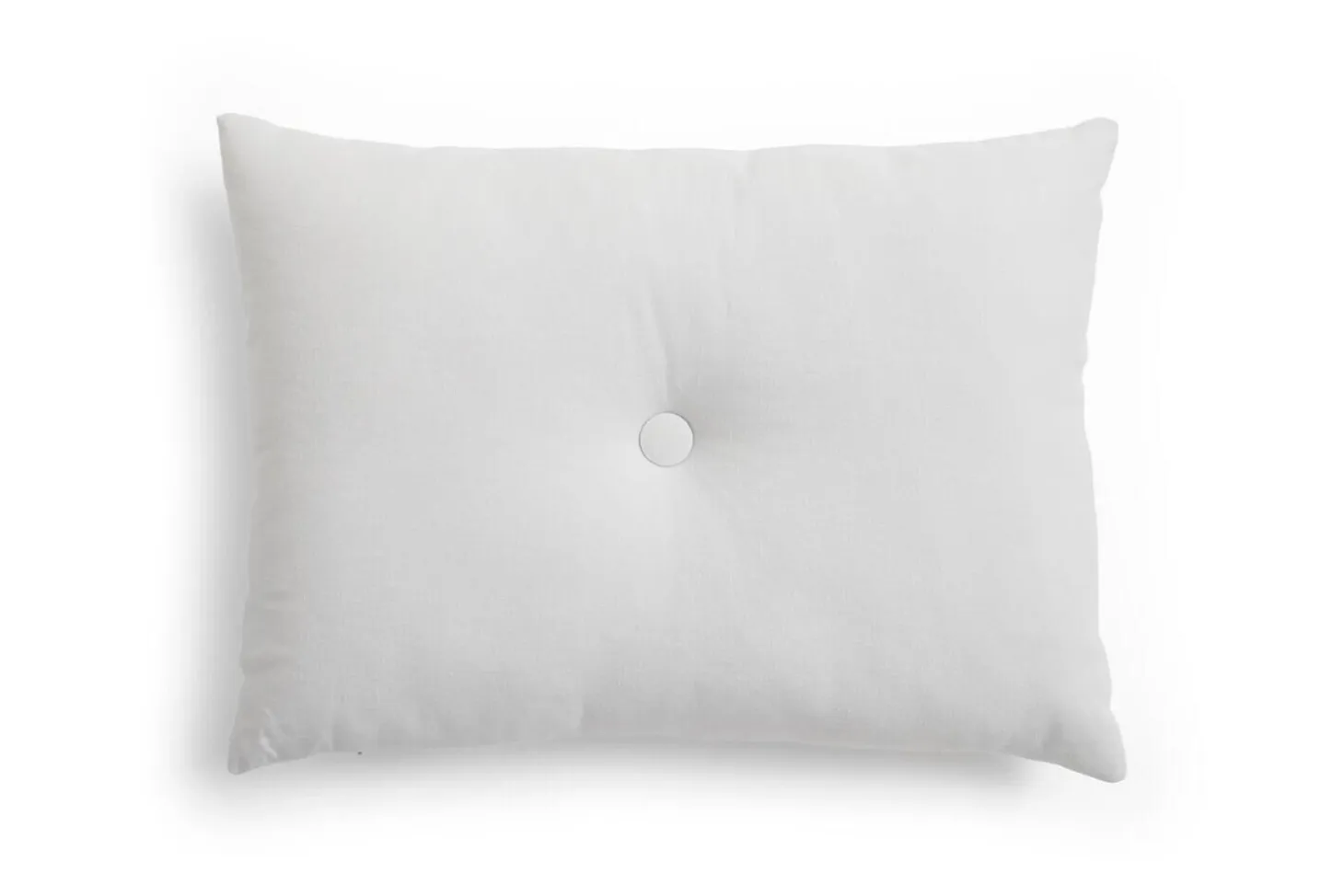 Den lysegrå pude kombinerer 55% økologisk bomuld og 45% hør i en holdbar blanding. Med sine 60×45 cm og den karakteristiske knap i midten skaber den balance mellem komfort og stil i din indretning.