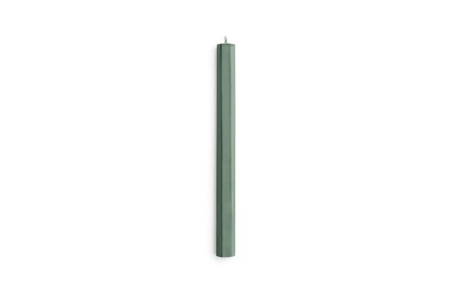 Dette sekskantede stearinlys i en dæmpet armygrøn nuance tilfører et diskret designelement til din indretning. Den karakteristiske form og farve gør lyset til et naturligt midtpunkt, der nemt kan integreres i forskellige stilarter.