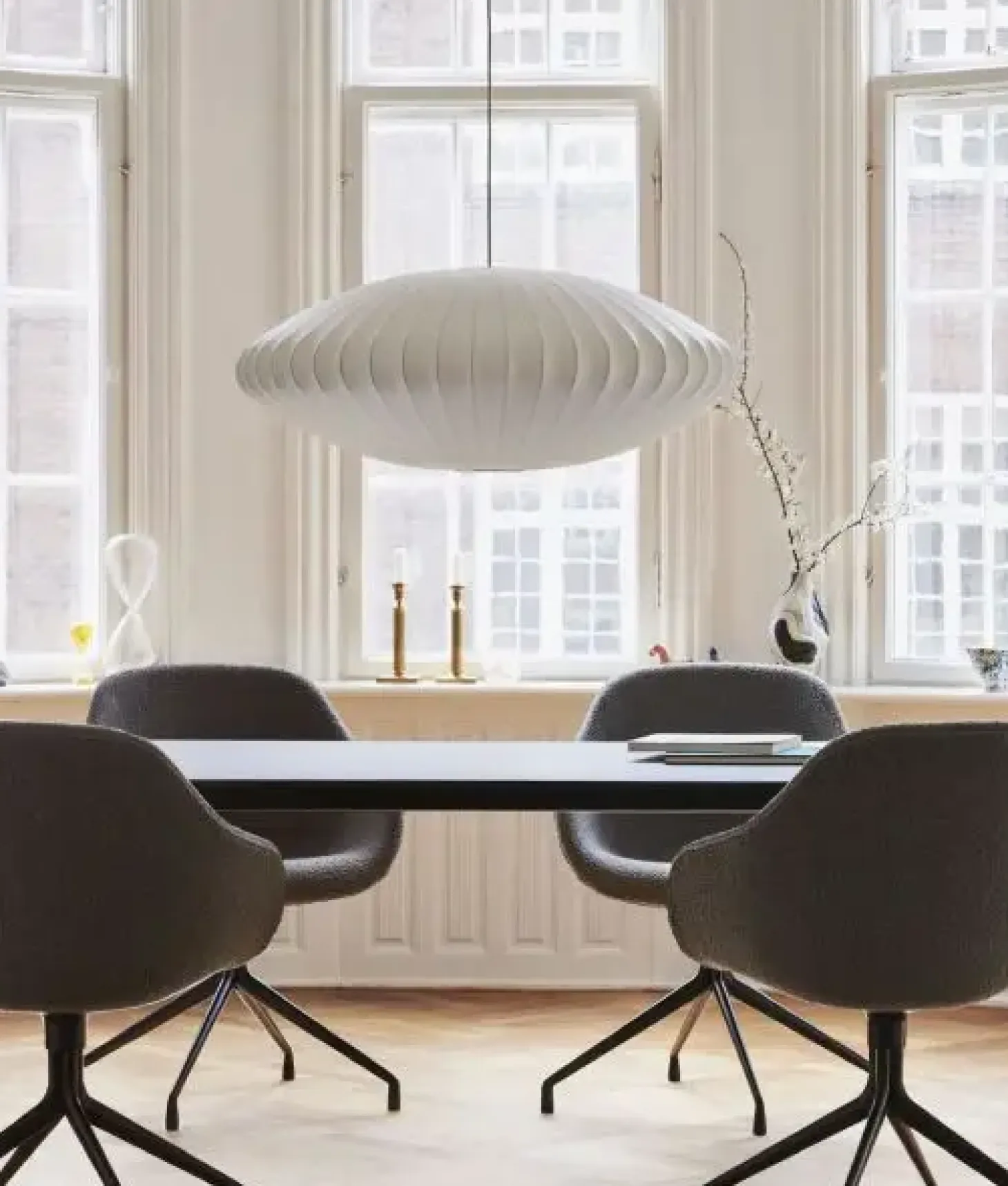 Med sin off-white farve og karakteristiske form passer pendlen ind i mange indretningsstile. Den store størrelse gør den ideel til rum med højt til loftet eller over spiseborde, hvor den kan skabe en indbydende atmosfære og markant forbedre rummets belysning.