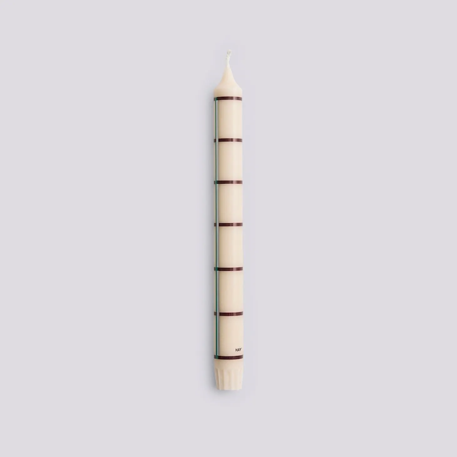 Dette håndlavede stearinlys fra HAY kombinerer moderne stribet design med klassisk håndværk. Det er fremstillet af 100% stearinvoks, hvilket sikrer en ren og rolig flamme gennem hele brændetiden.