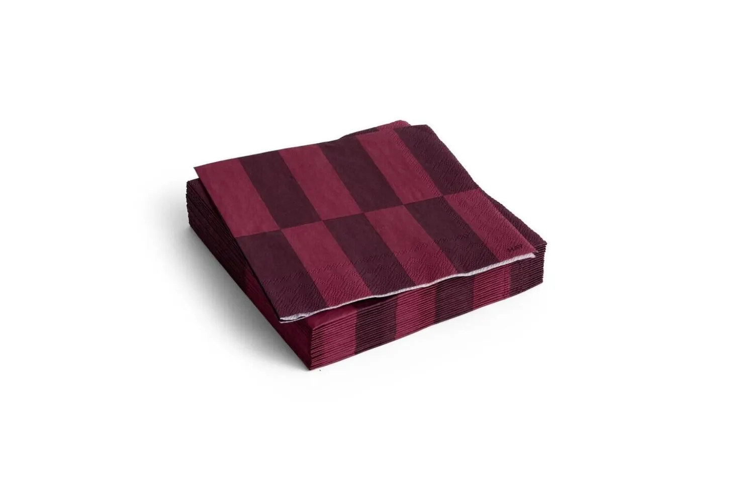 Disse mønstrede cocktailservietter fra Hay kombinerer praktisk størrelse med et stilrent design i bordeaux og vinrøde nuancer. De er fremstillet i blødt tissuepapir, der giver dig både komfort og funktionalitet ved bordet.